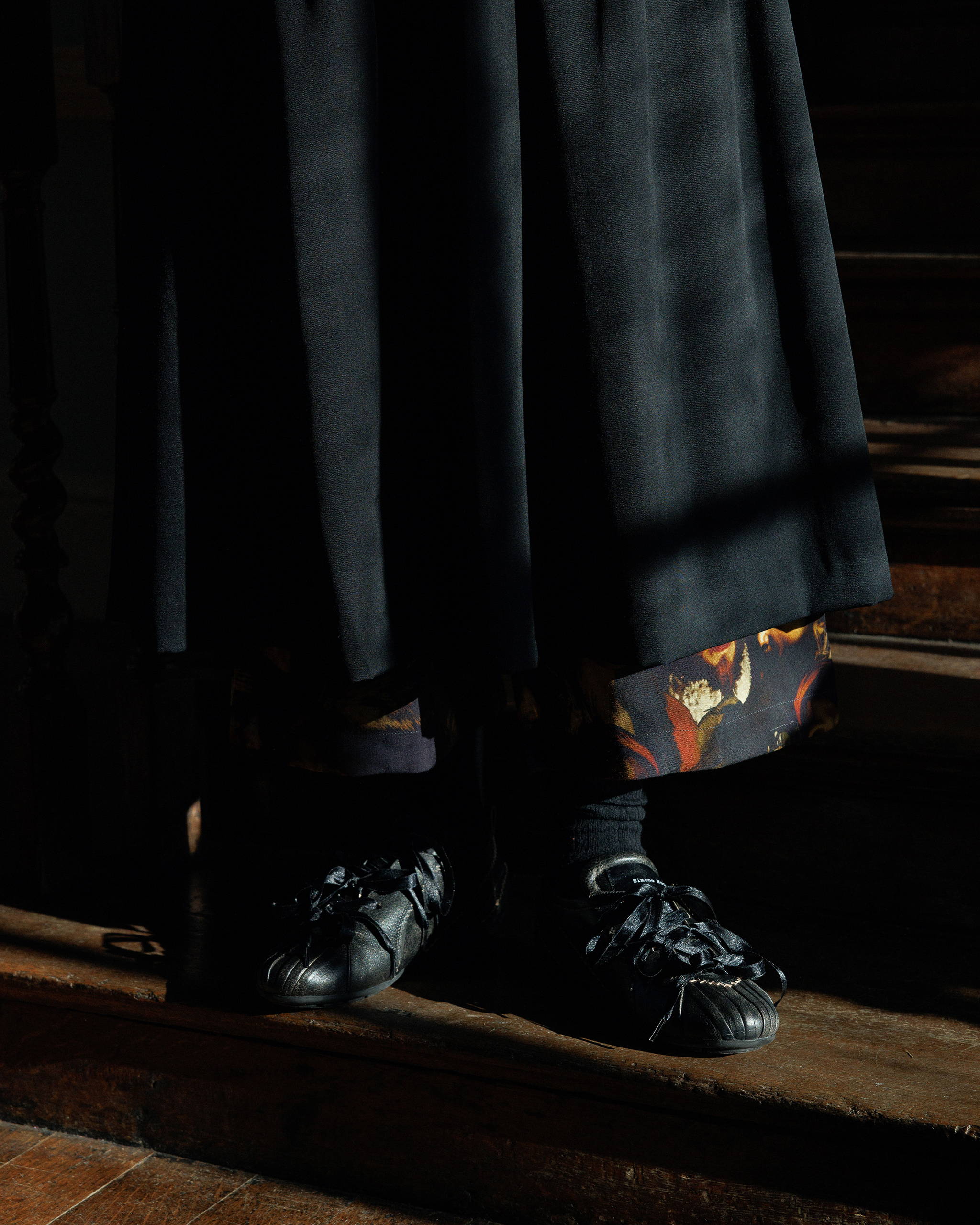 Comme Des Garçons Comme Des Garçons Ruffled Pinafore Dress Black, Paul Harnden W. Pyjama Suit S. Faces, Simone Rocha Ballerina Grip Trainer Dark Brown, Simone Rocha Mini Biker Belt Bag Black, Simone Rocha Faux Fur Hare Coin Purse Bag Charm Black/Clear, Rosa Maria Jewellery.