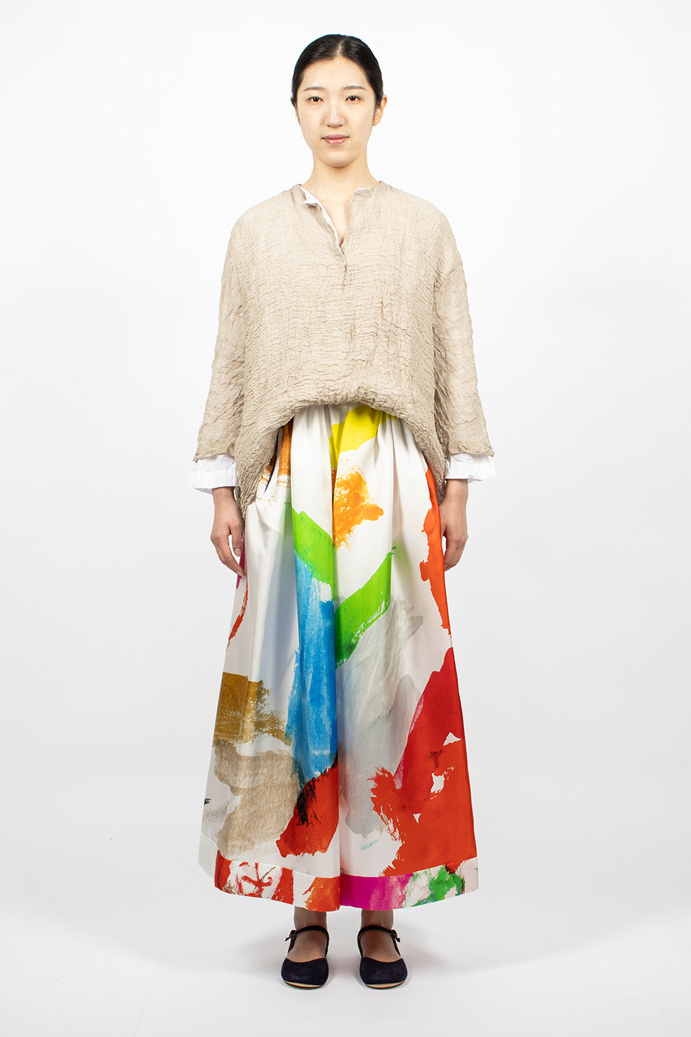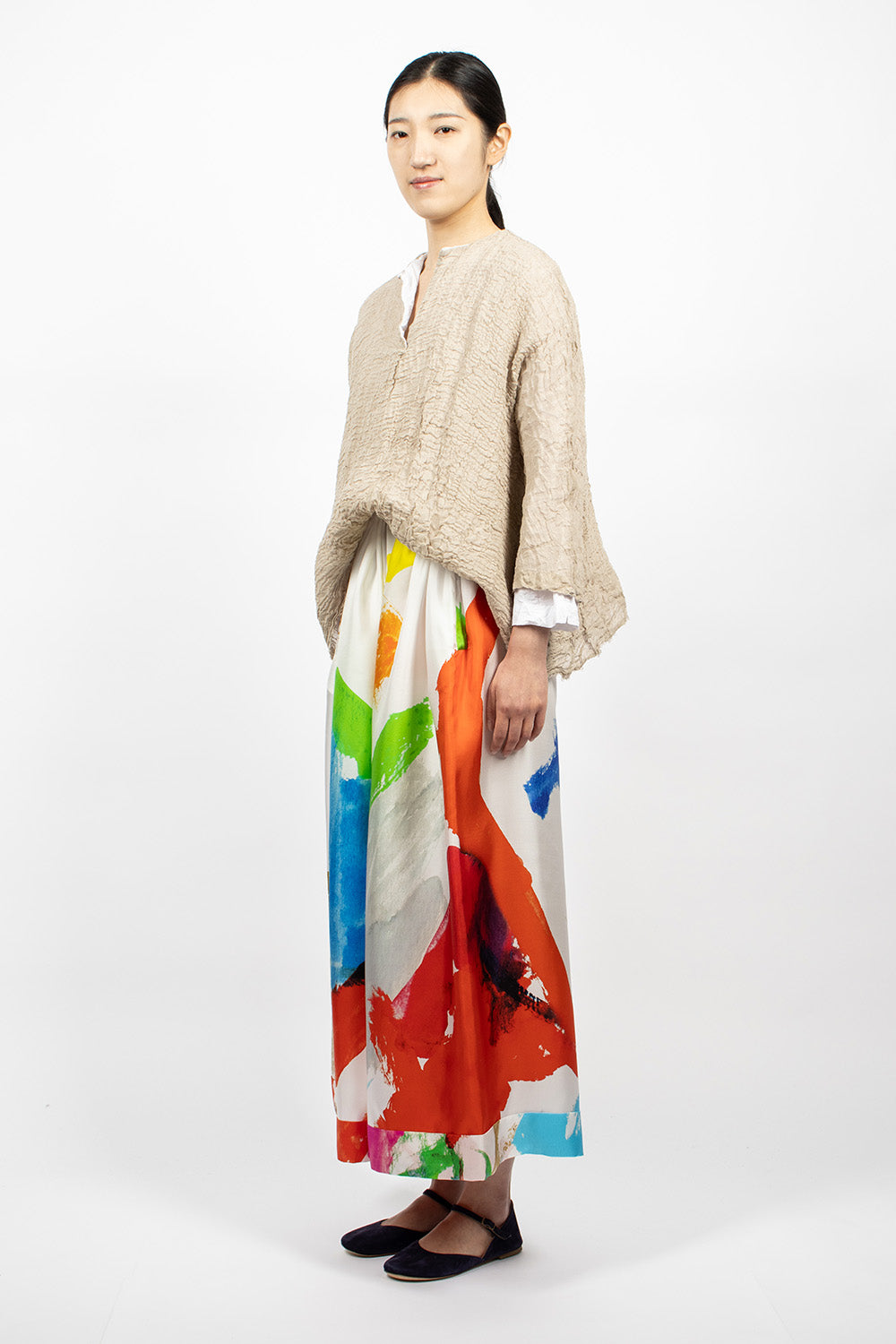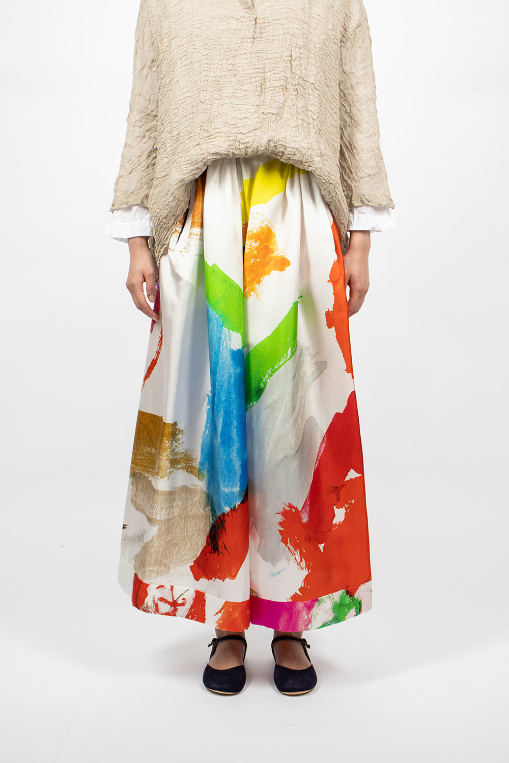 Daniela Gregis Tognon wide trousers in Nido drawing silk. Adjustable drawstring waist with side pockets. Waist belt loops. Wide and straight leg design with selvedge cuffs.