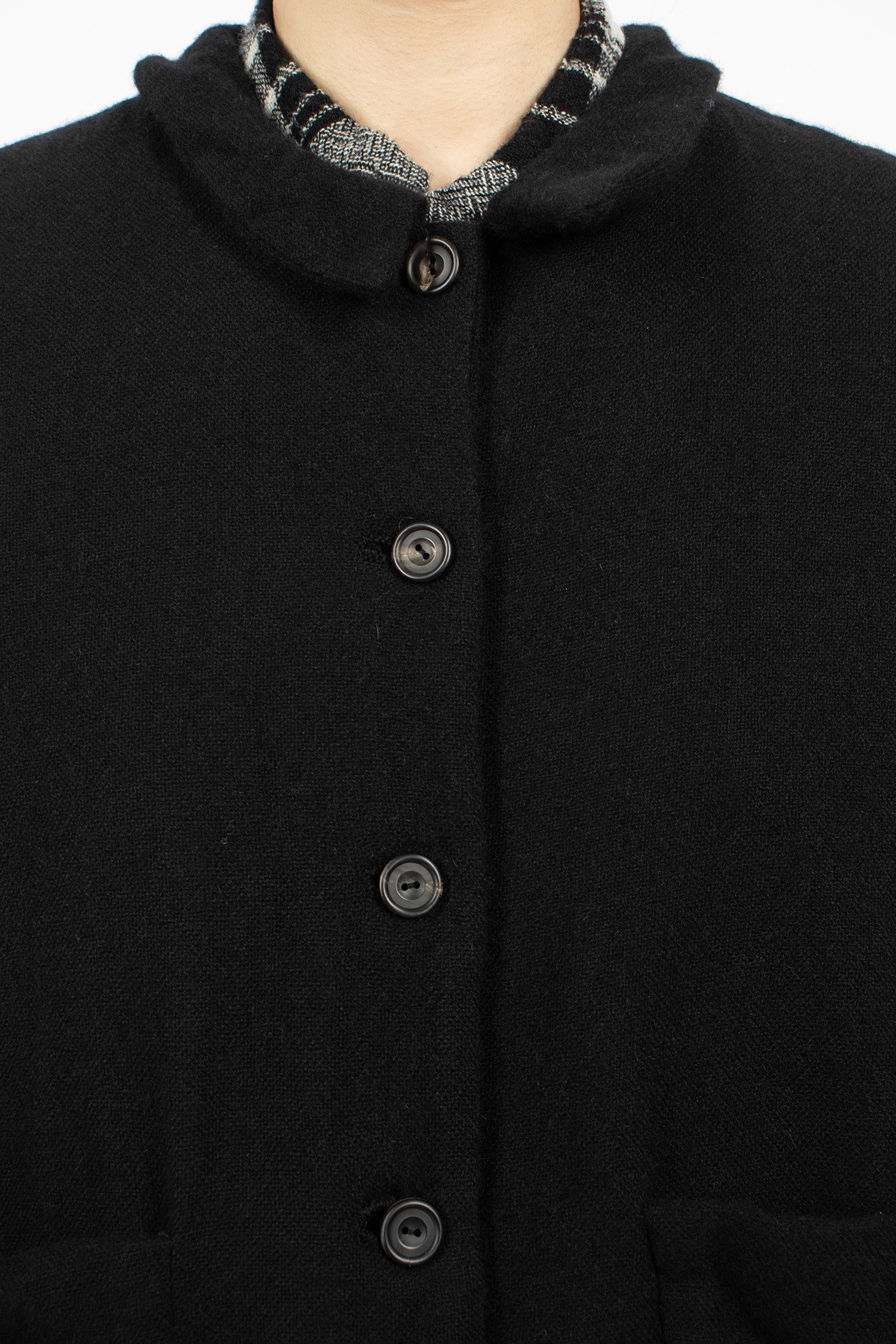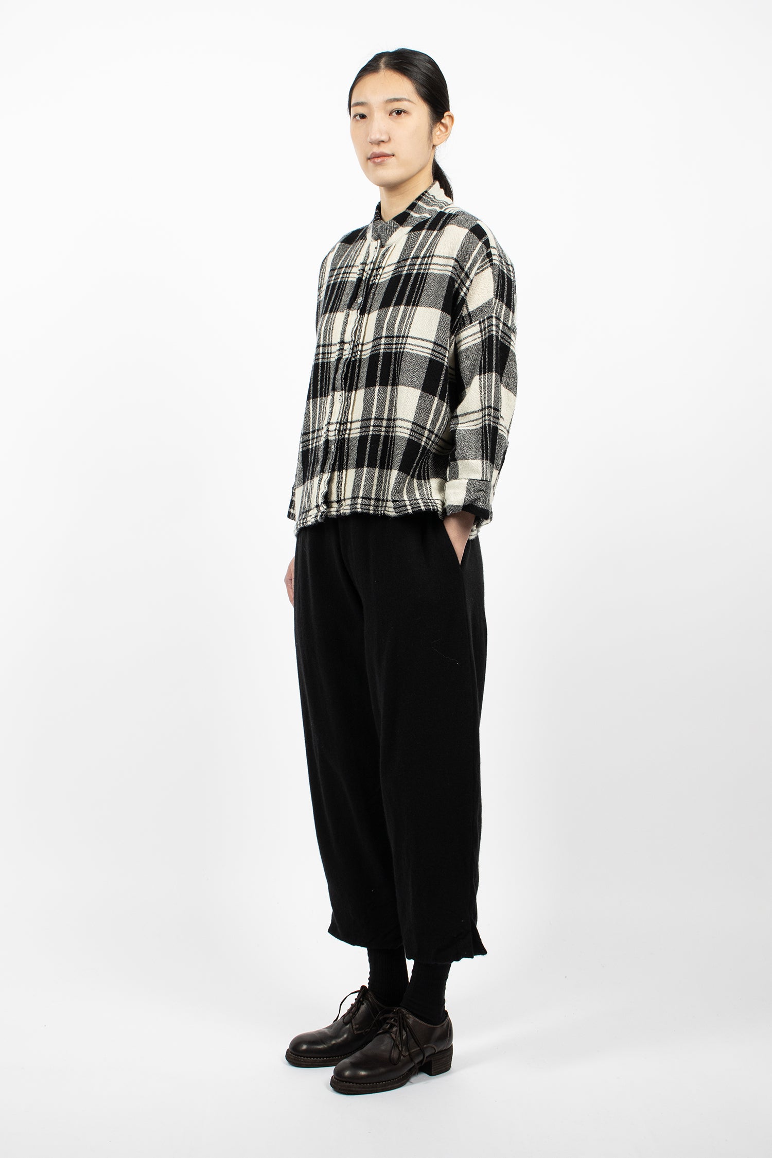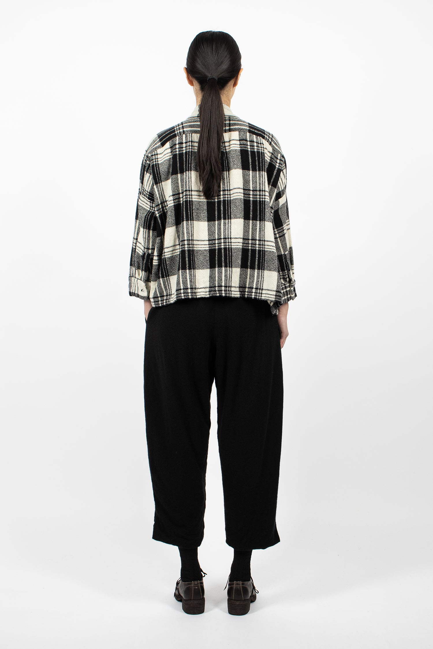 Ricorrrobe square shirt in checked silk. Stand collar with panelled button placket, dropped shoulder and bracelet length sleeve with button cuff. Boxy, cropped fit.