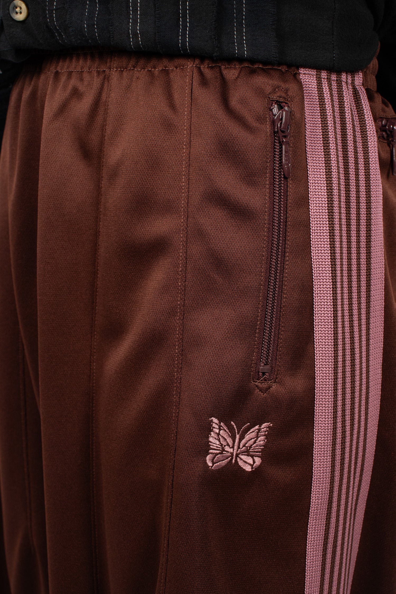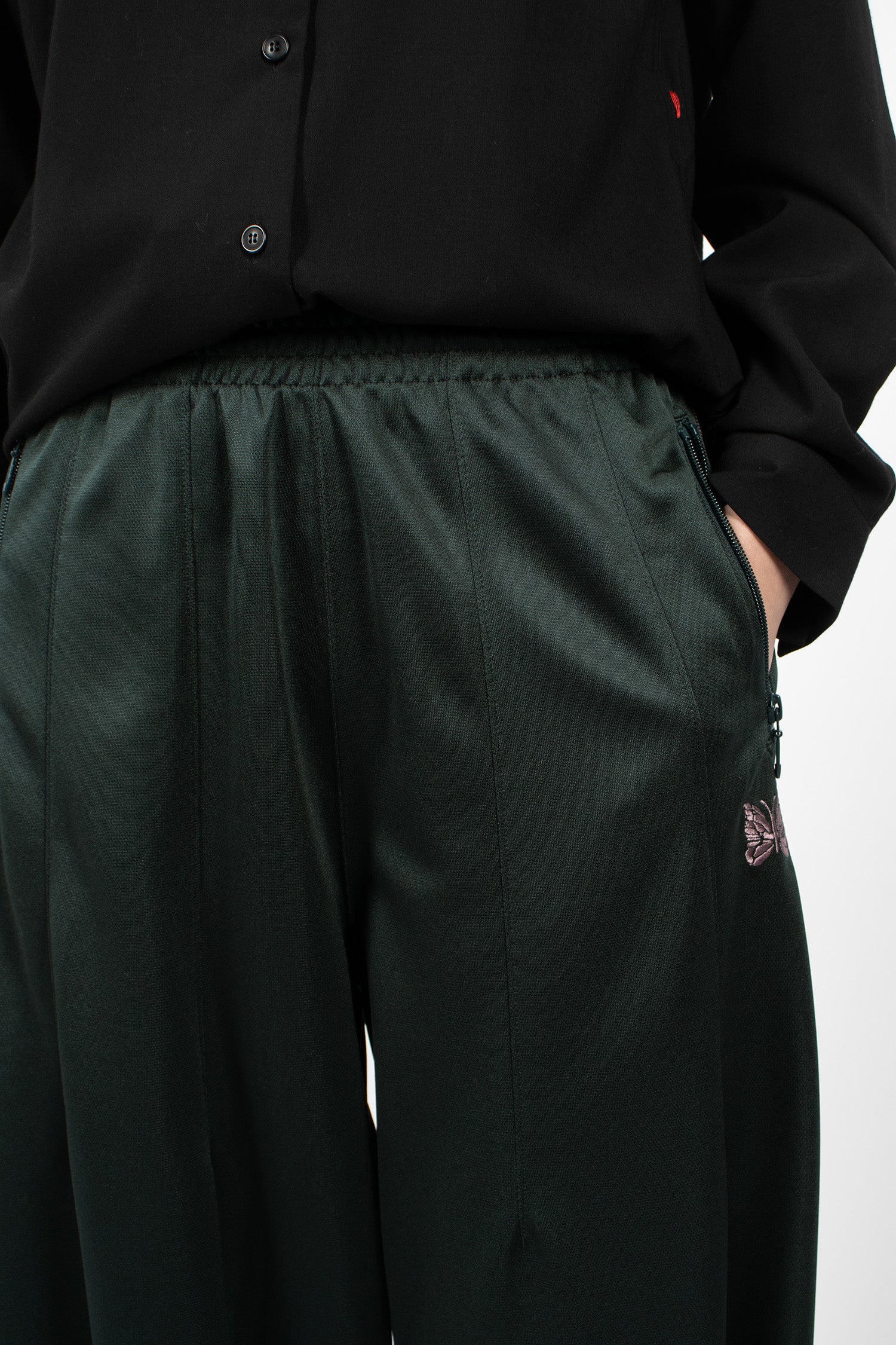 Needles track jacket in flower jacquard. High neckline with double zip front fastening, side zip pockets, butterfly embroidered logo and ribbed trims.