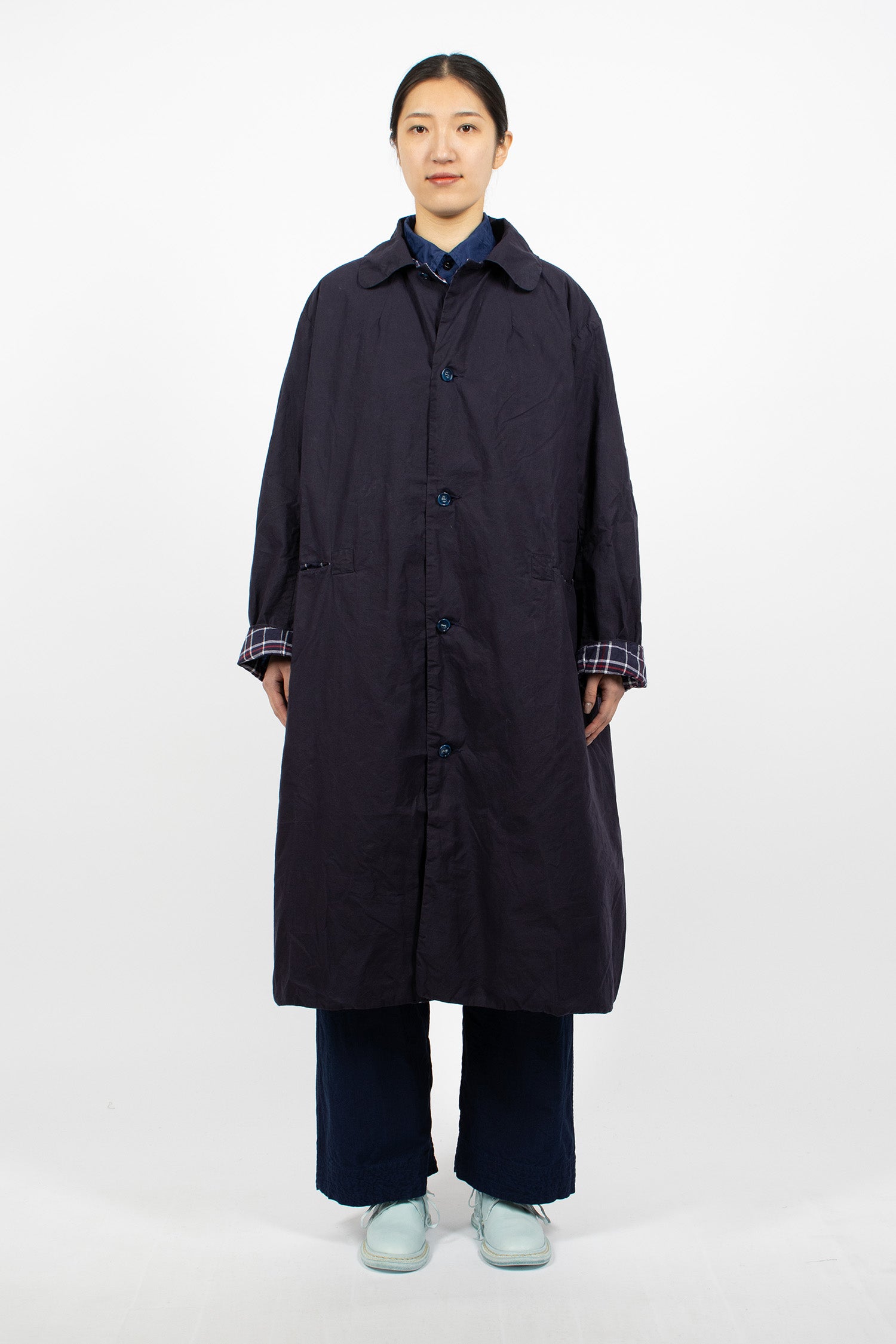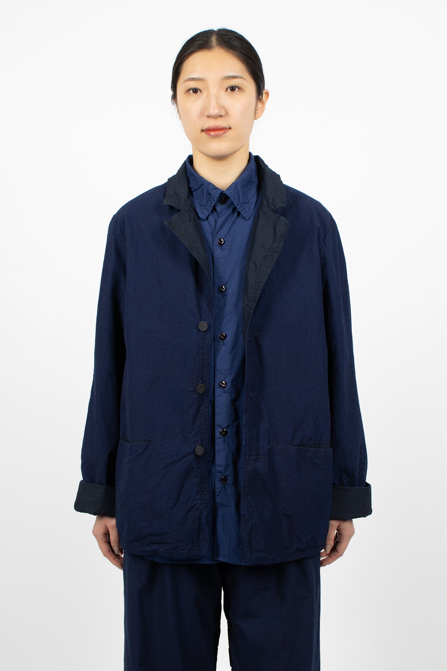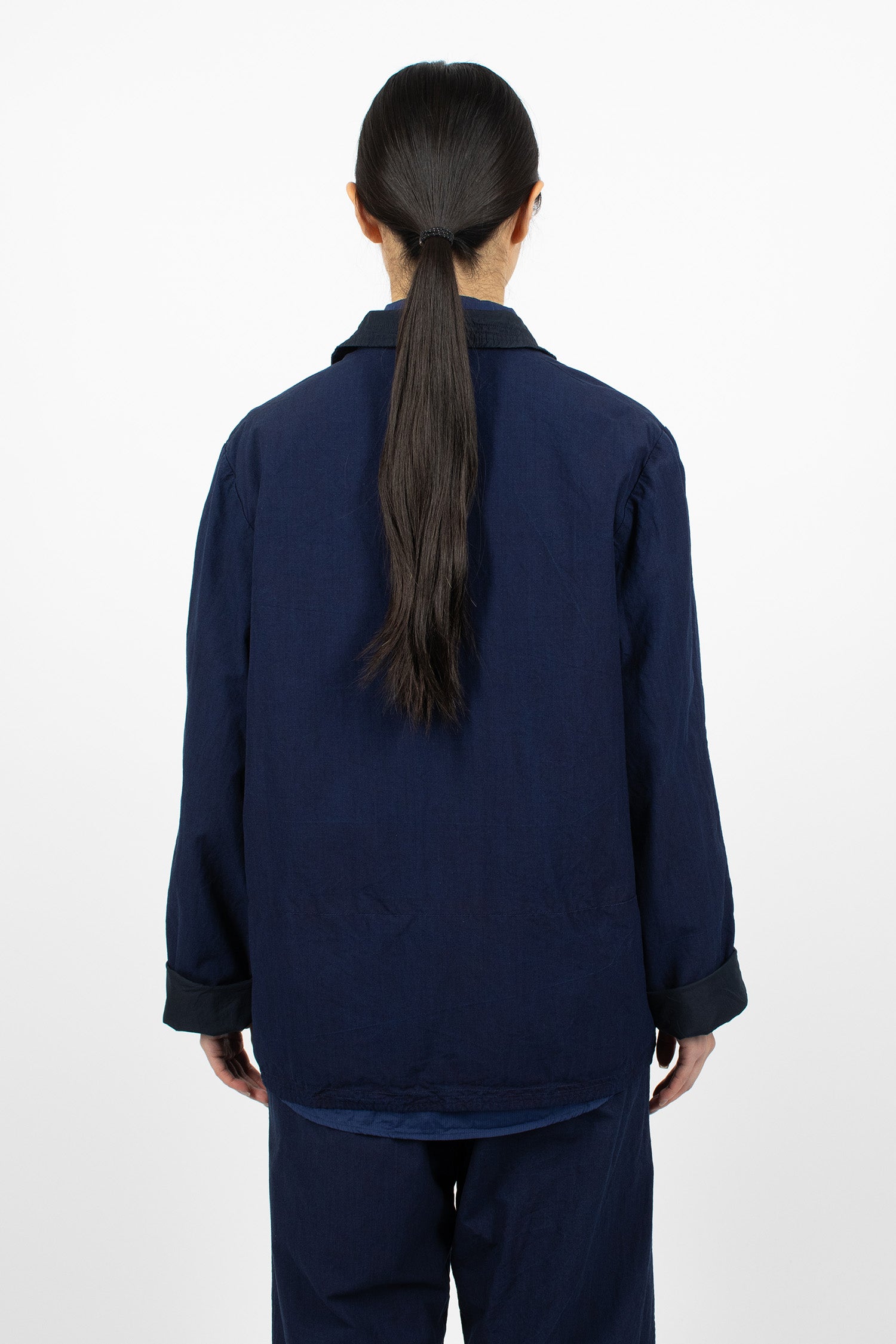 Chez Vidalenc Gary canvas pants in indigo. Elasticated waist on the back with button and zip front closure, belt loops, side seam pockets. Wide straight leg with pleated detailing. Back patch pockets. Unisex fit.