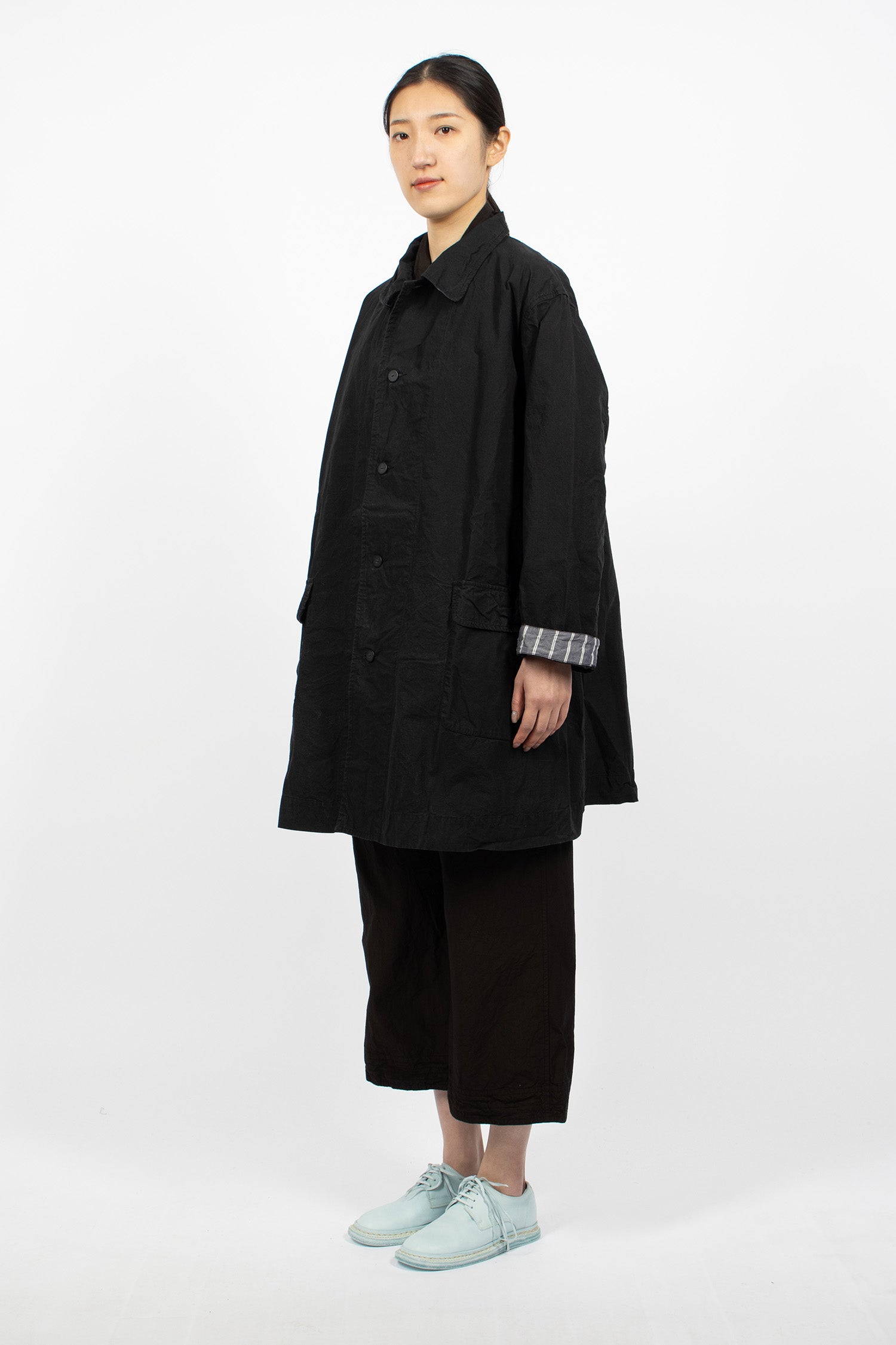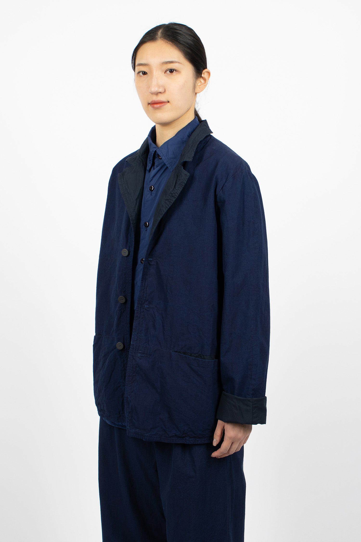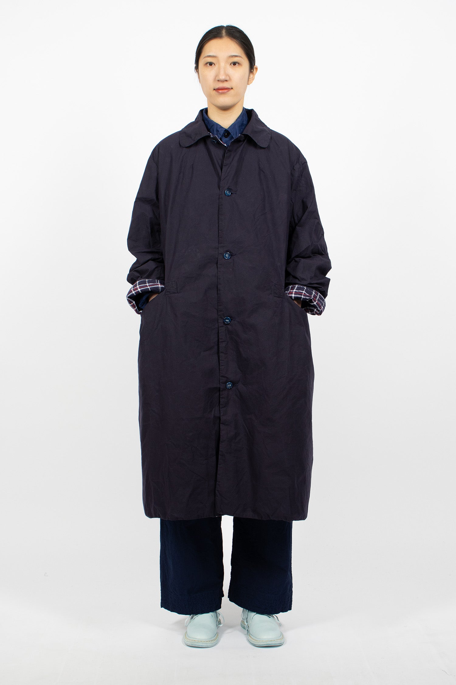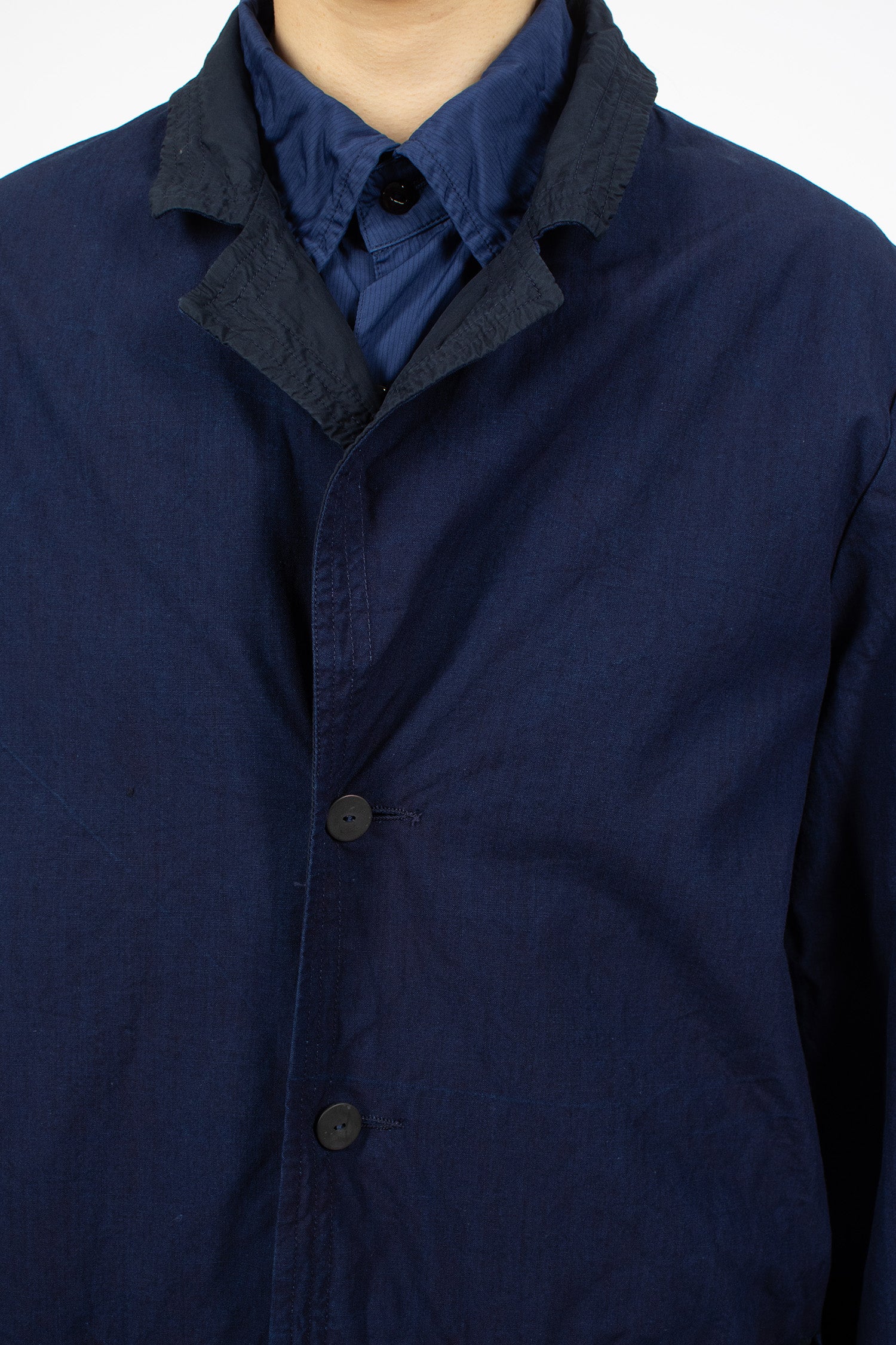 Chez Vidalenc Gary canvas pants in indigo. Elasticated waist on the back with button and zip front closure, belt loops, side seam pockets. Wide straight leg with pleated detailing. Back patch pockets. Unisex fit.