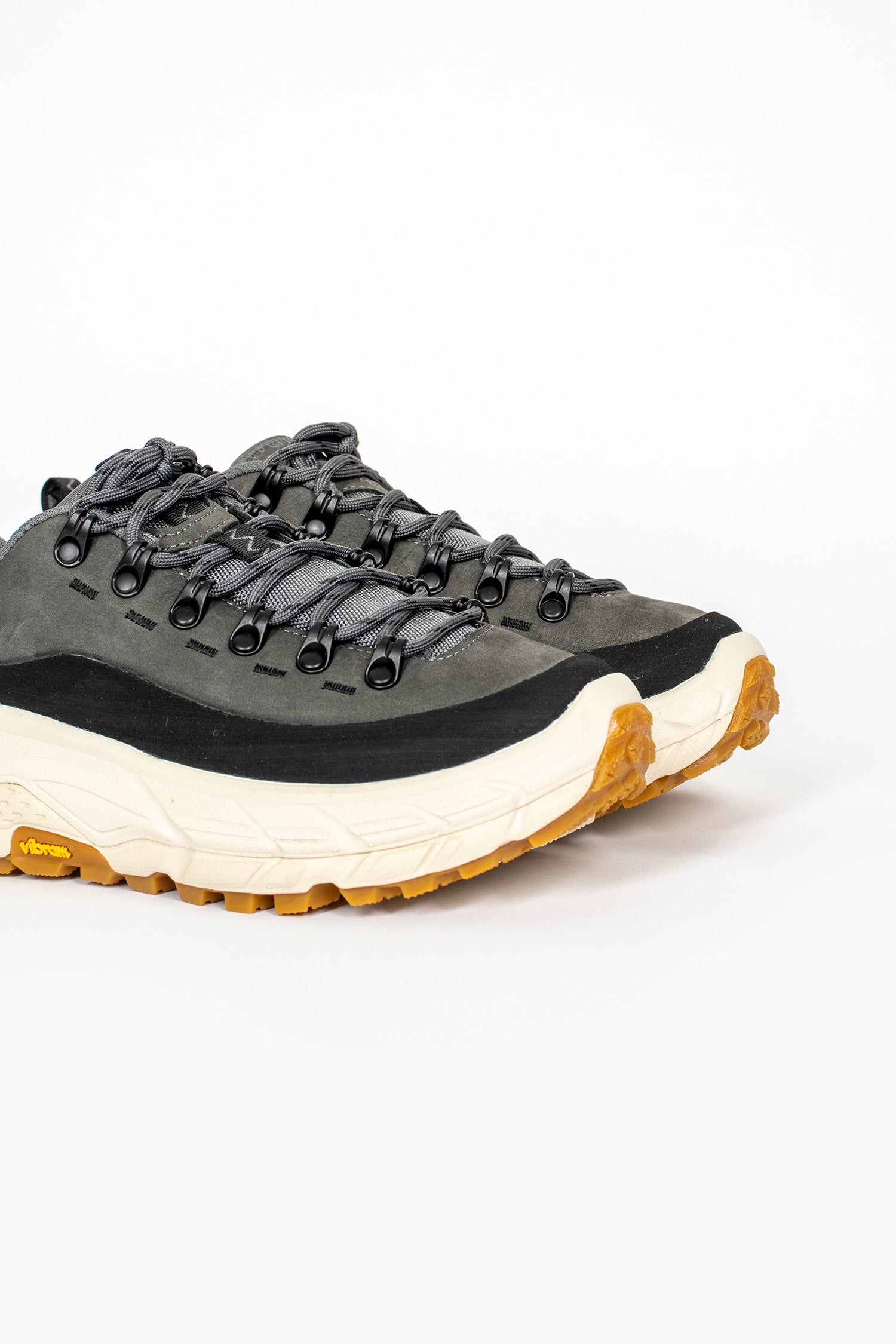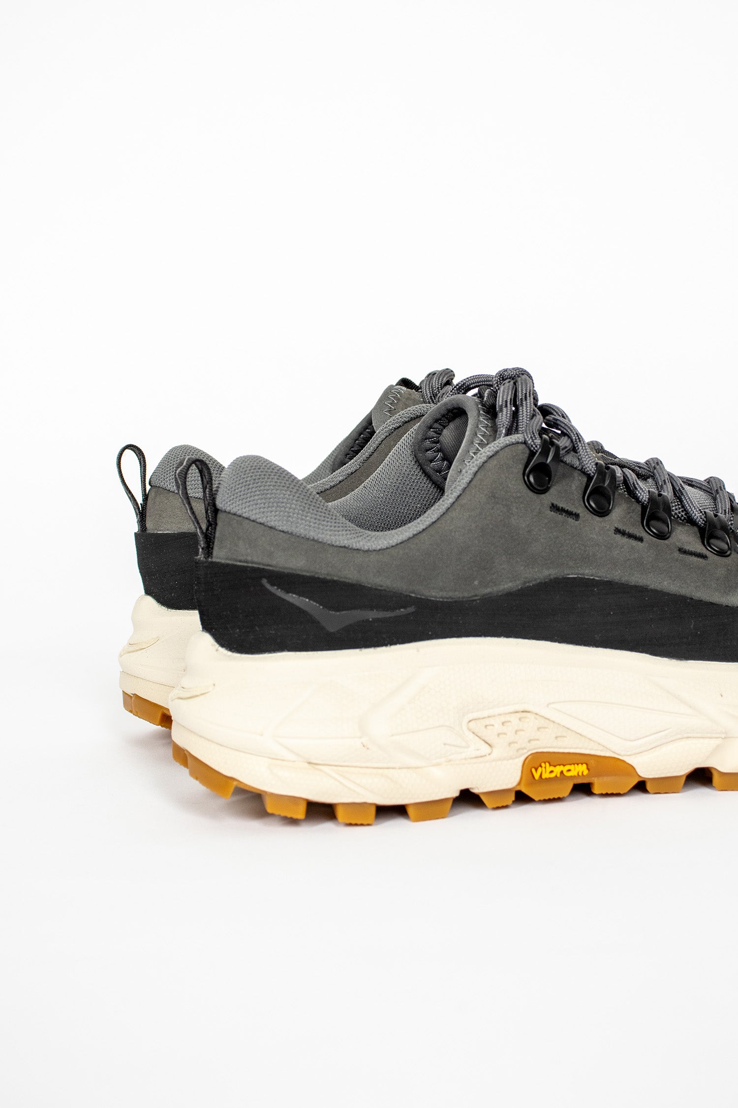 Hoka One One Tor Summit in outer orbit and black. Tor Summit offers cushioning and stability in a lowcut hiker with a midsole blend of EVA and rubberised foam material for comfort underfoot. In a low collar option, a purpose built mid-foot increases underfoot stability on uneven terrain, and Vibram Megagrip outsole rubber with 5mm lugs provides traction and durability.