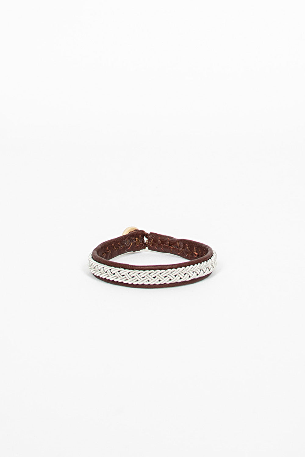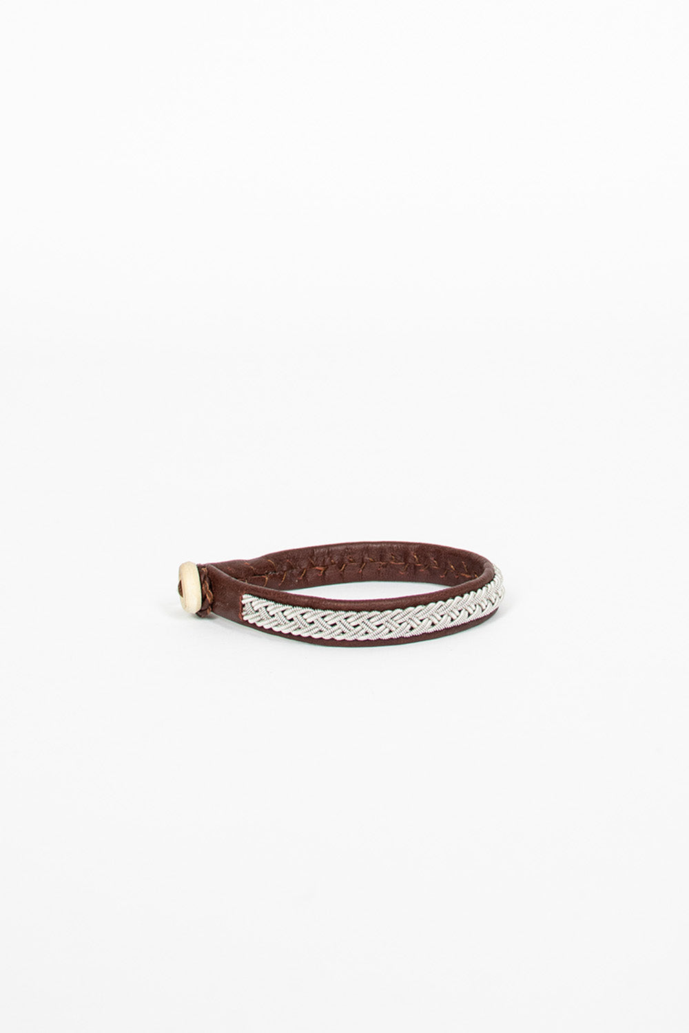 100% leather, pewter, silver, antler. Made in Sweden. Each piece is unique and handmade with delicacy and precision, the expression of a long tribal tradition.