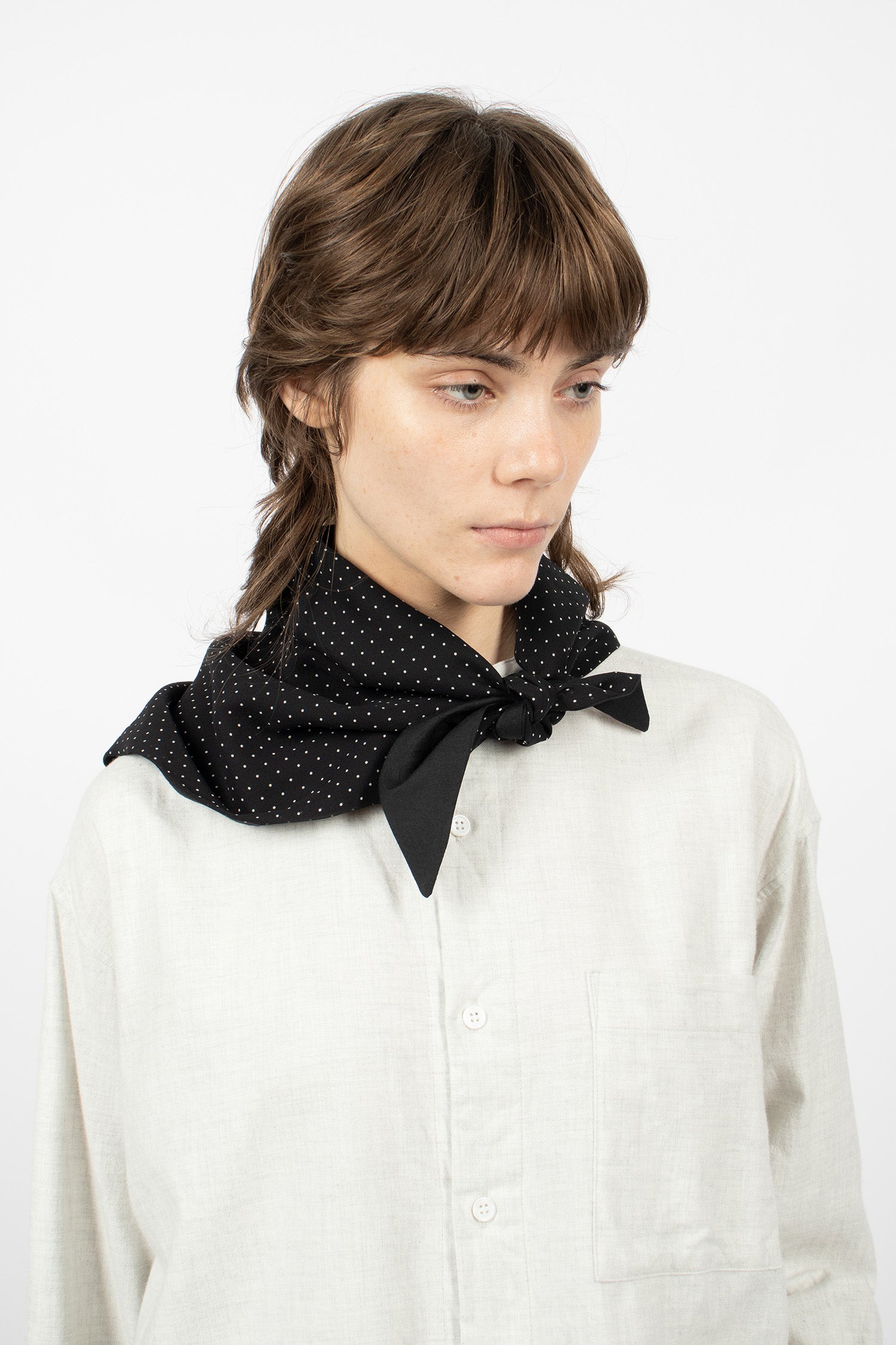 Toujours triangle scarf in midnight silk. Layered scarf in silk chiffon with pin dot and silk-cotton blend.