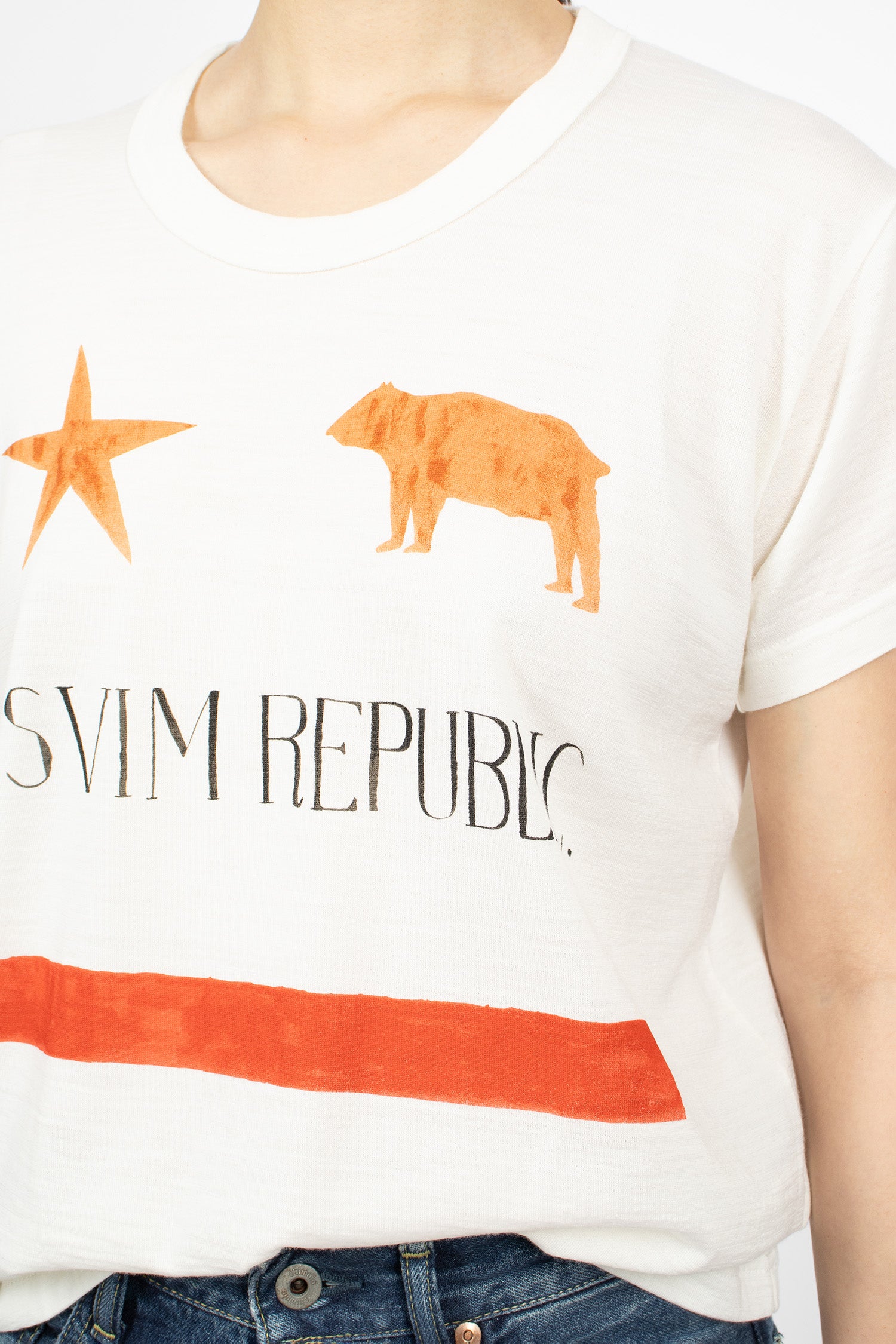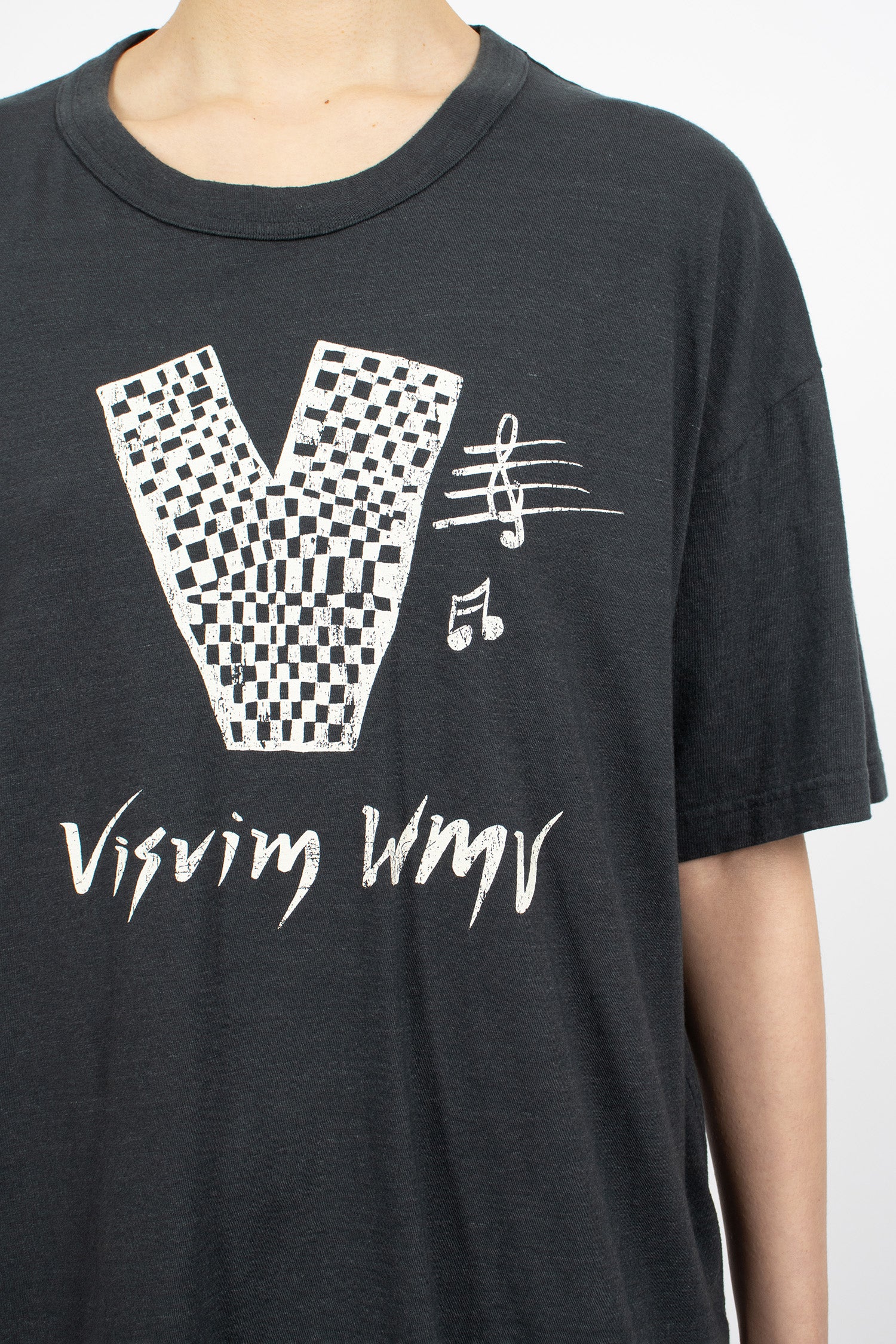 VISVIM Carree short sleeve t-shirt in white superfine wool with 'VISVIM REPUBLIC' printed detail on the front. Ribbed crew neck, short sleeves, straight hem with Visvim WMV logo embroidery on the back. One wash, regular fit.
