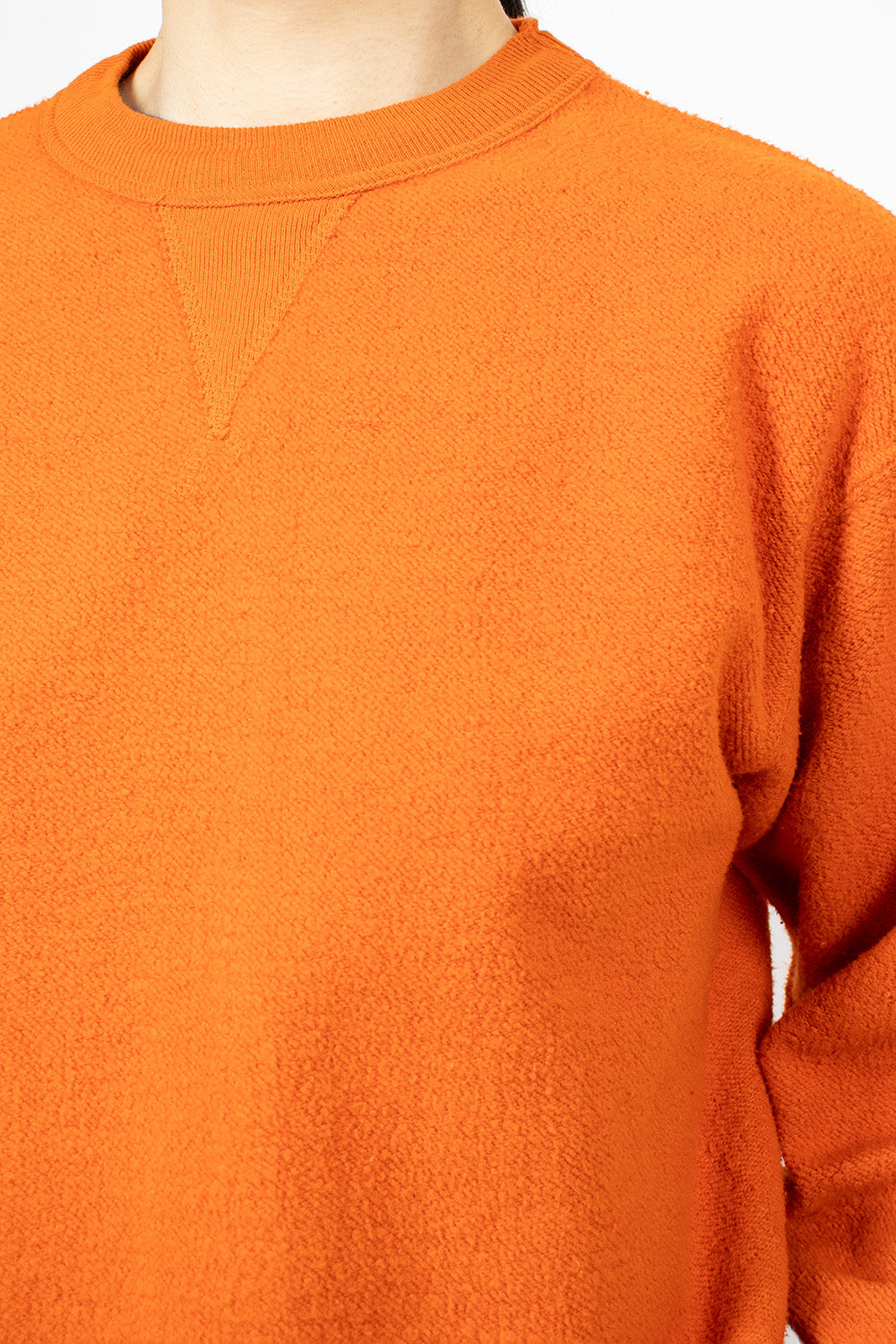 Sunray Spirit Hina crew neck sweatshirt in gold flame reversed fleece. Ribbed crew neck, cuffs and hem. Long sleeves. 100% cotton, machine wash. Made in Japan.