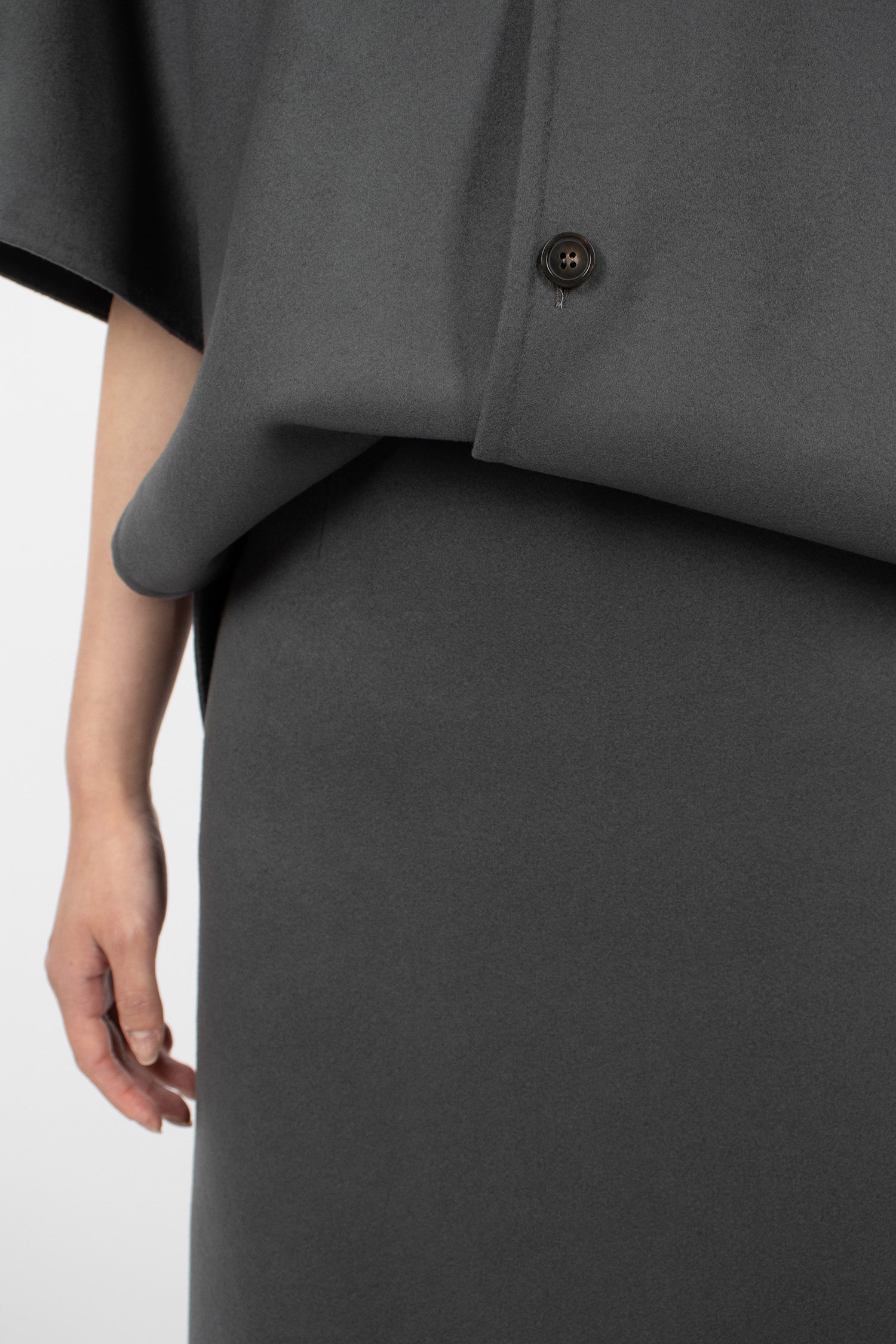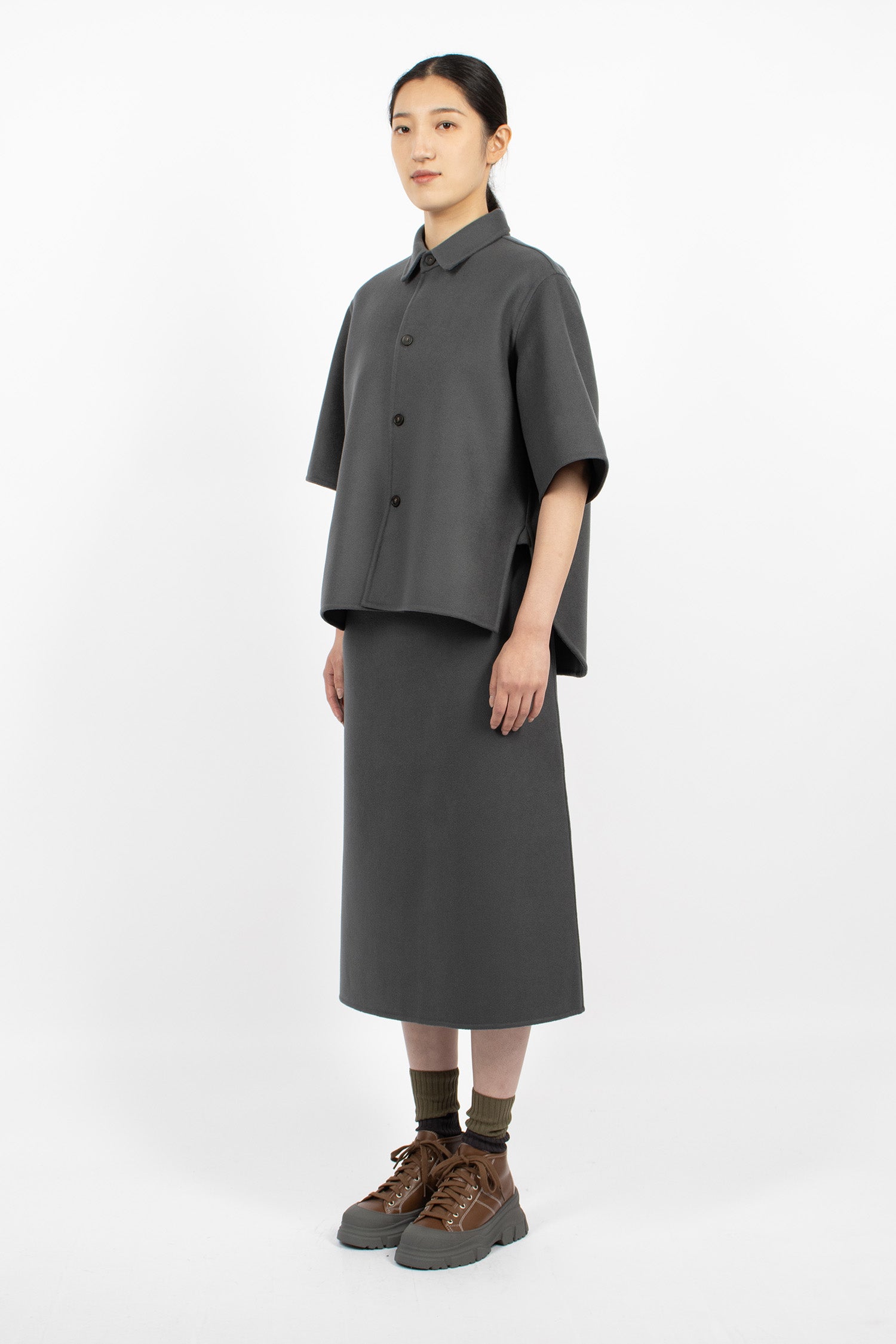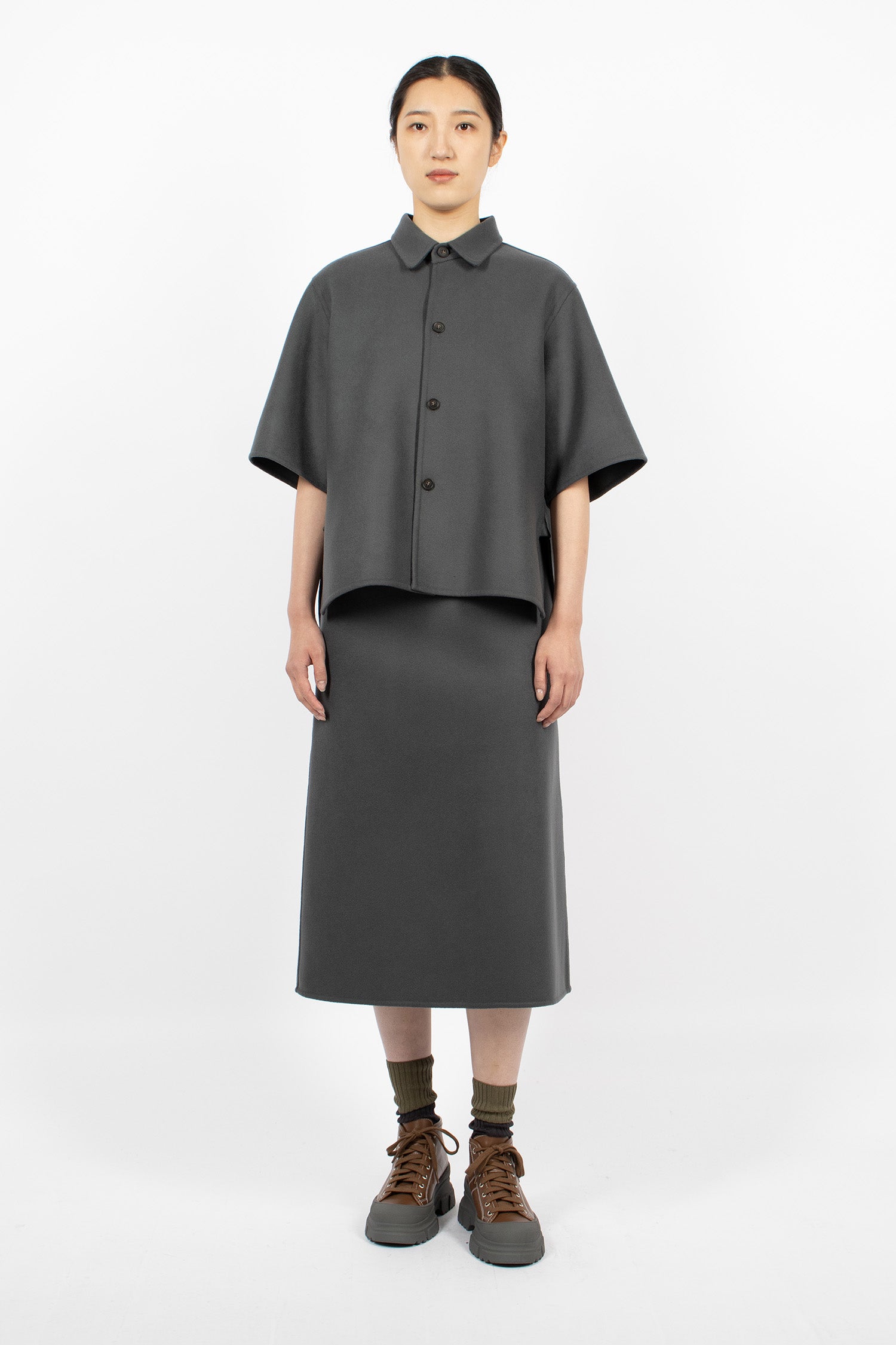 Sofie D'Hoore Budapest shirt in off-white cotton poplin. Collar with button front fastening, short sleeves, chest patch pocket, curved step hem. Relaxed fit.