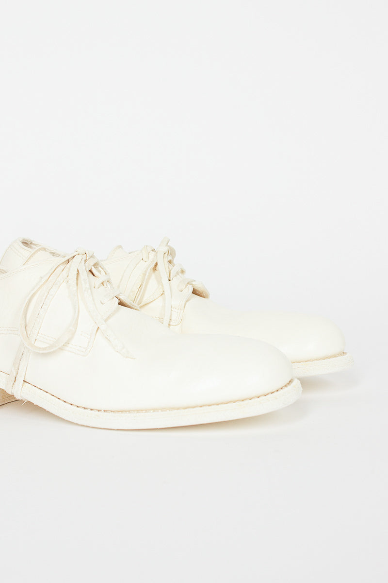 Guidi 992X donkey full grain classic derby in CO00T off white. Laced upper with rounded toe, soft leather and stacked leather heel. 100% soft horse leather. Made using hand crafted techniques, all pieces are therefore unique and can slightly vary in tone, size and finish. Made in Italy.