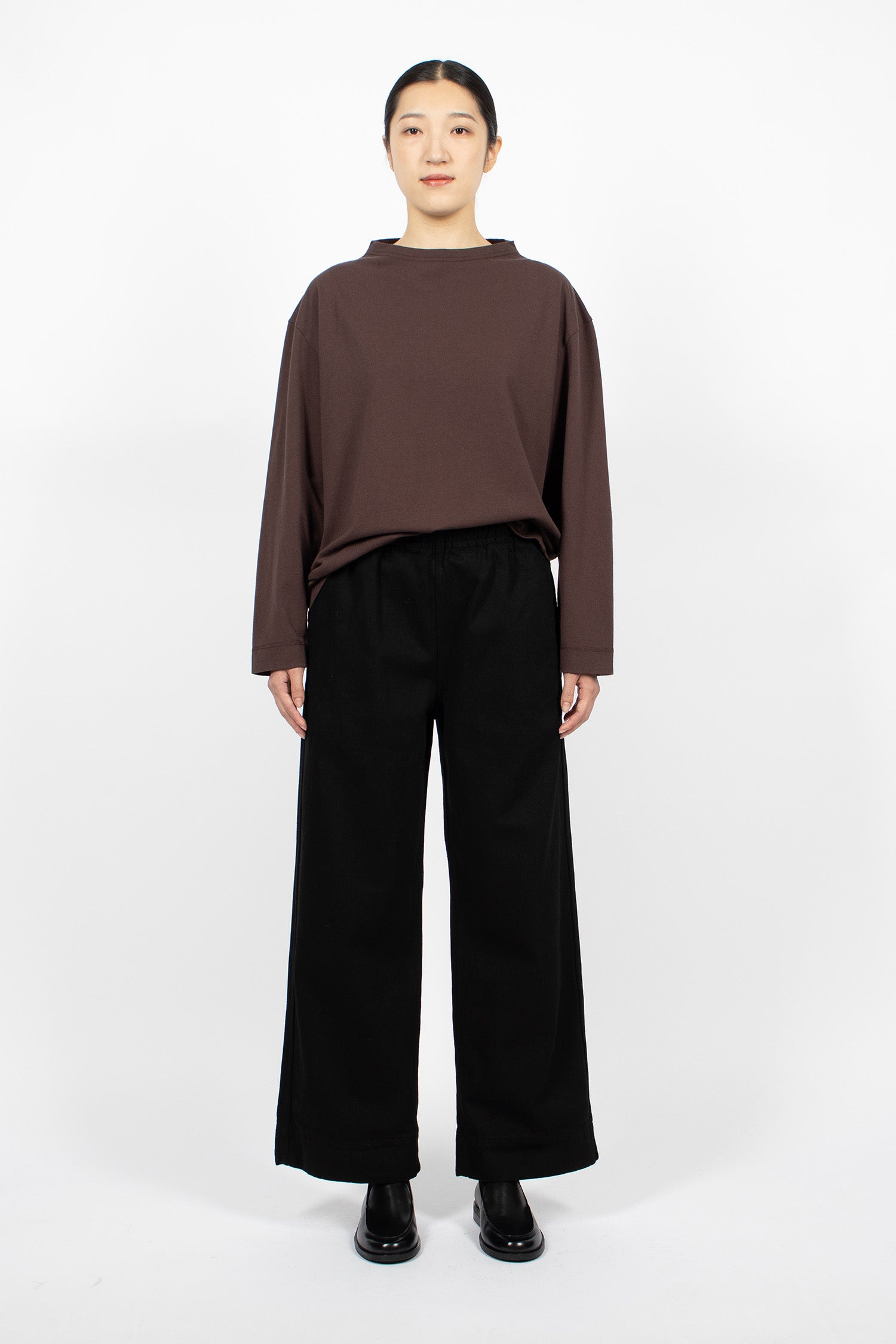 Margaret Howell MHL sports jogger in heavyweight cotton denim twill with a dry hand feel. Elasticated waistband with a herringbone tape drawcord. Side seam pockets with reinforced stitch detailing and herringbone tape facing. Back patch pockets with reinforced stitch detailing. Wide leg, relaxed fit.