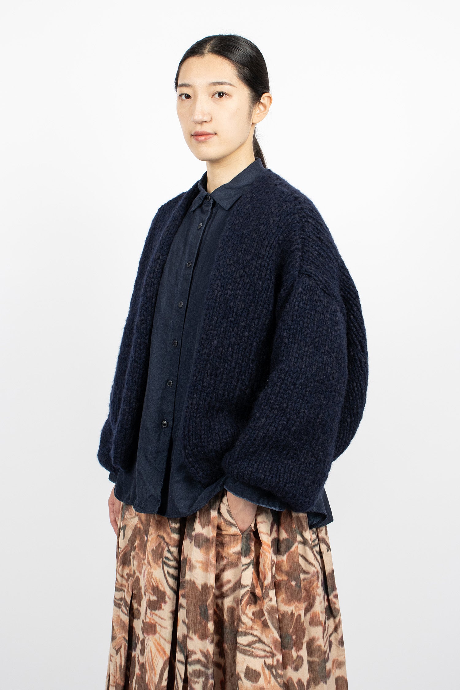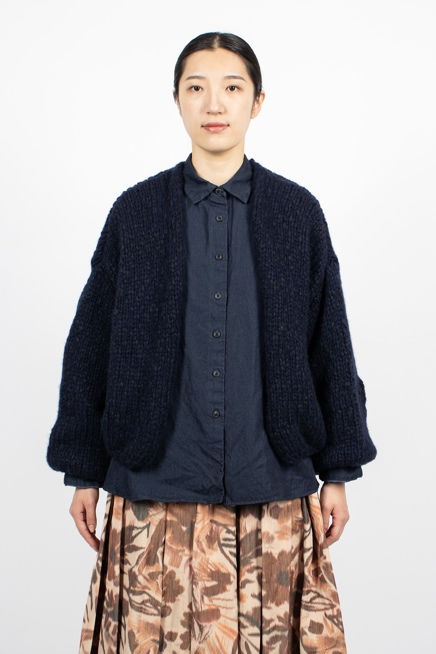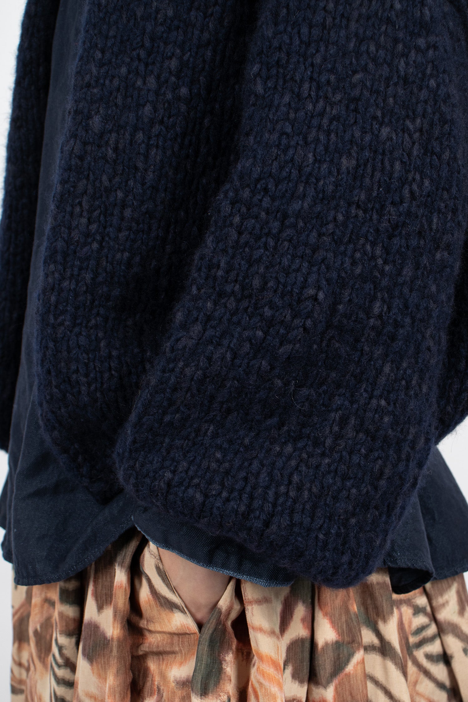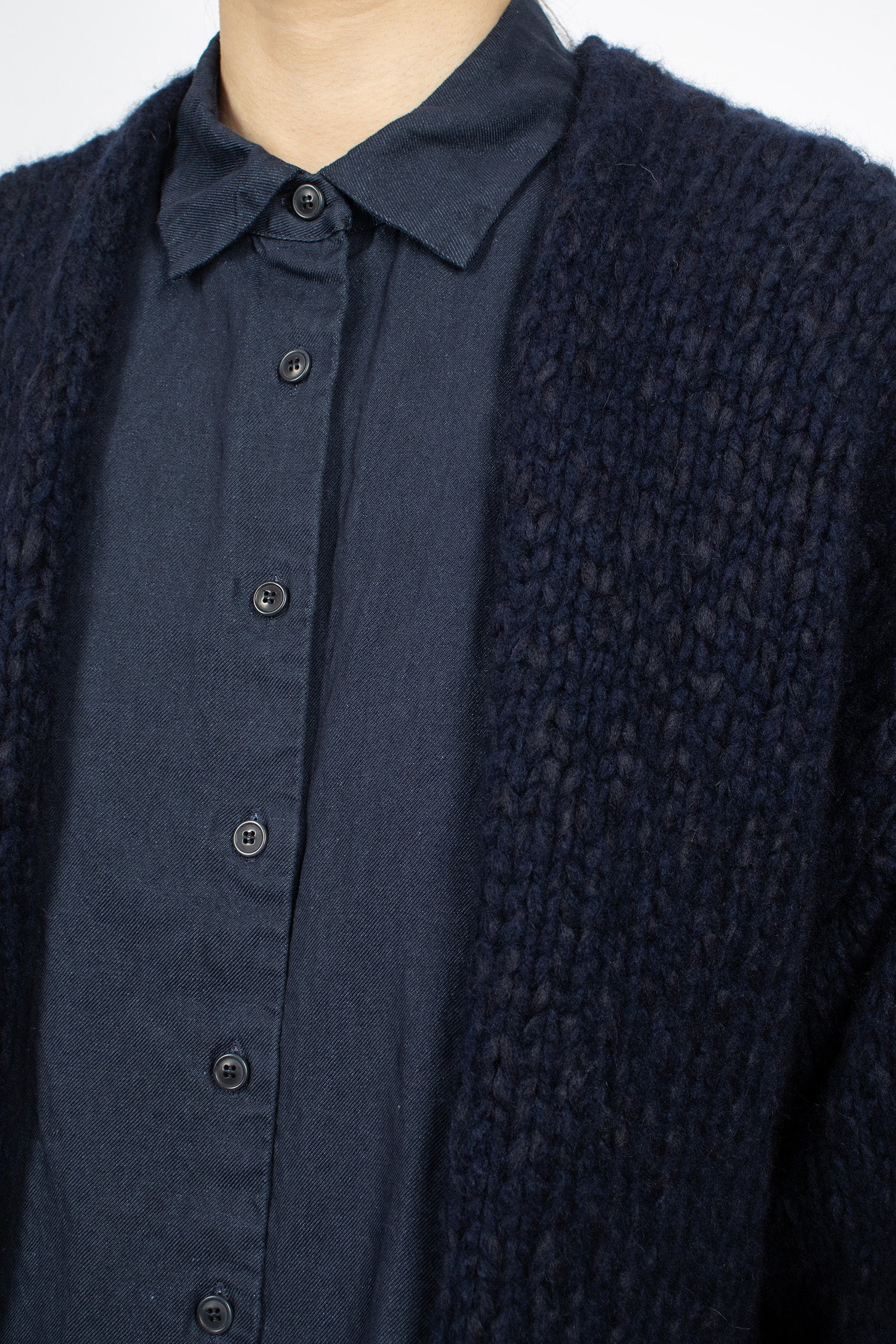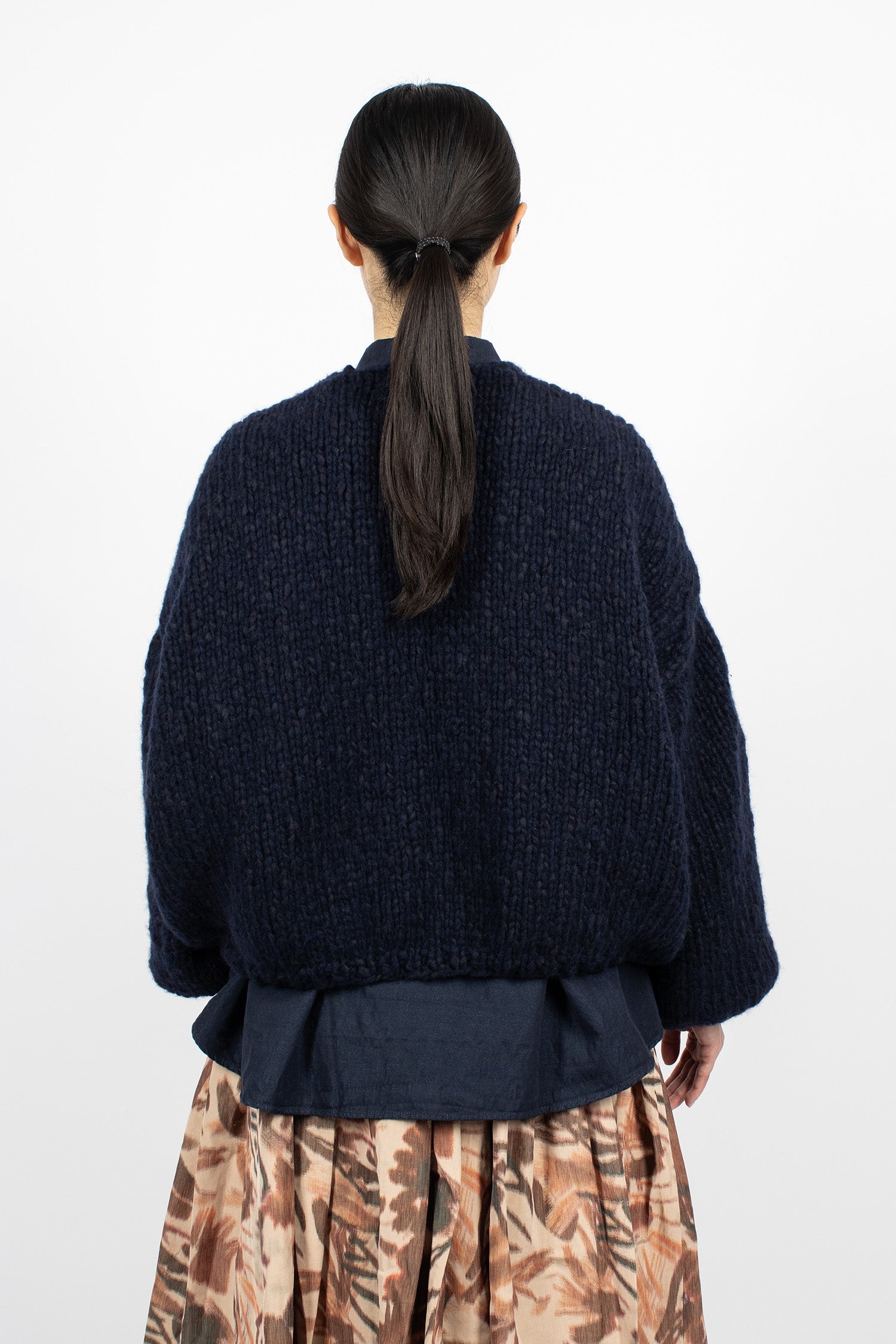 Casey Casey Julia reversible jacket in blue check cashmere and wool blend. Round neckline with tonal button front fastening, dropped shoulder, long sleeve. Front slit pockets and inner patch pockets. Boxy fit, slightly padded and fully lined.