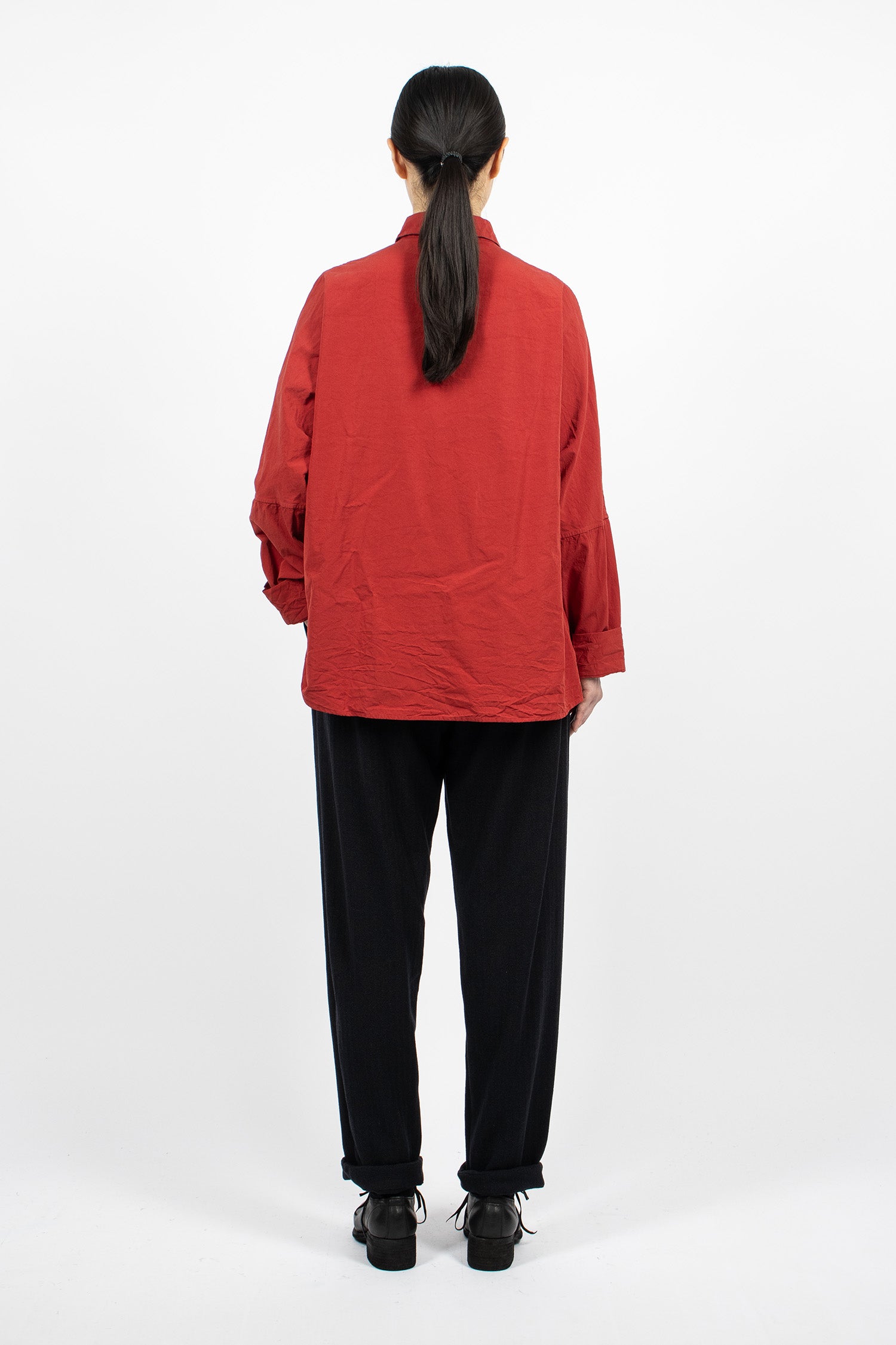 Casey Casey Verger pants in night cashmere blend herringbone. Elasticated waistband with drawstring. Side seam pockets and back patch pocket. Long tapered leg.