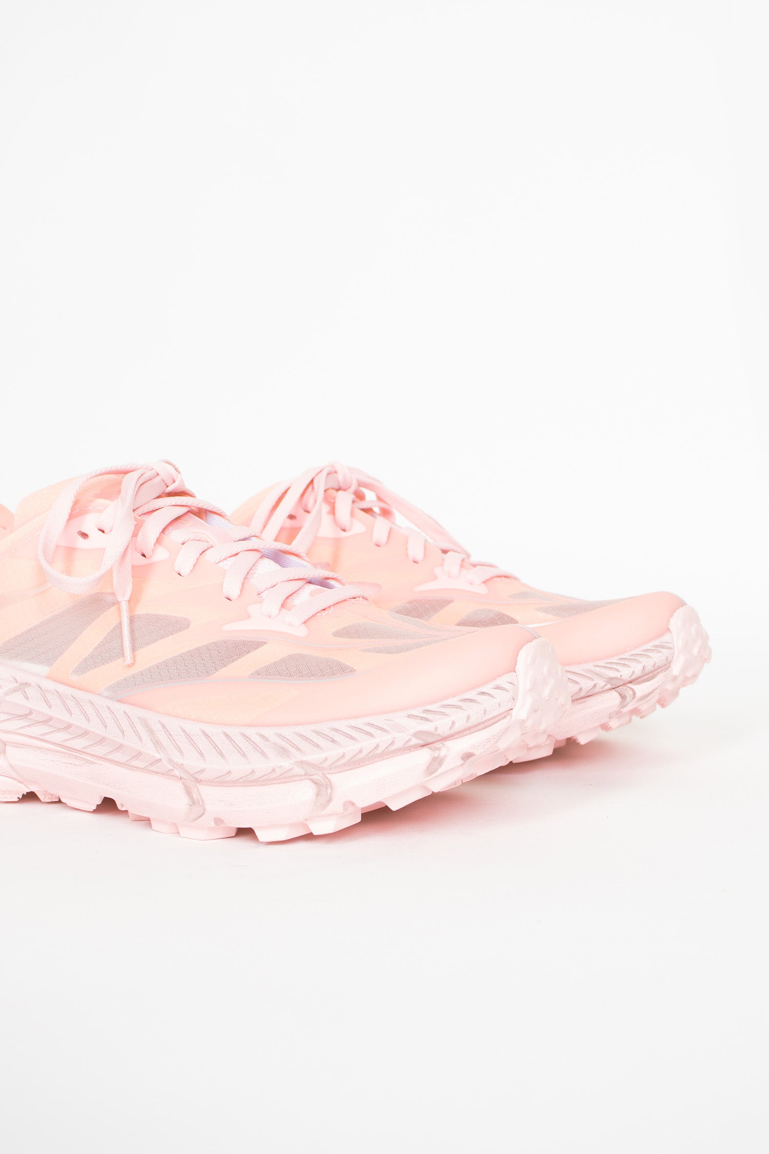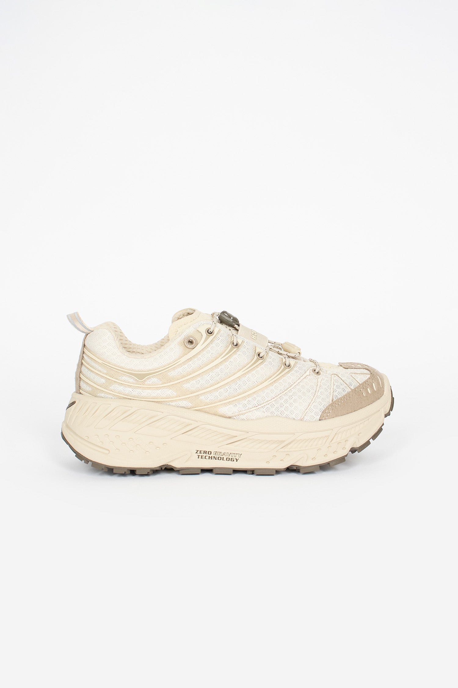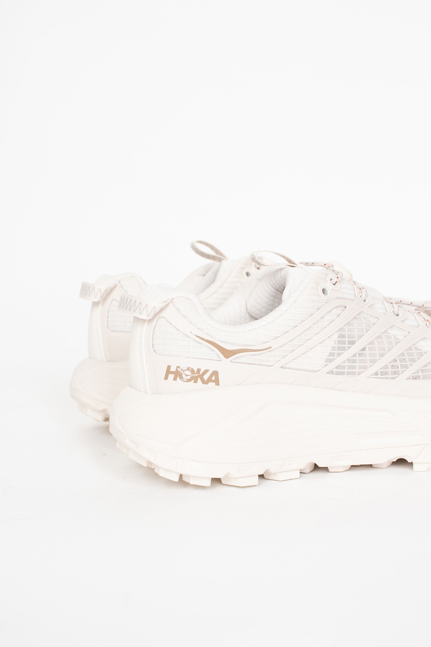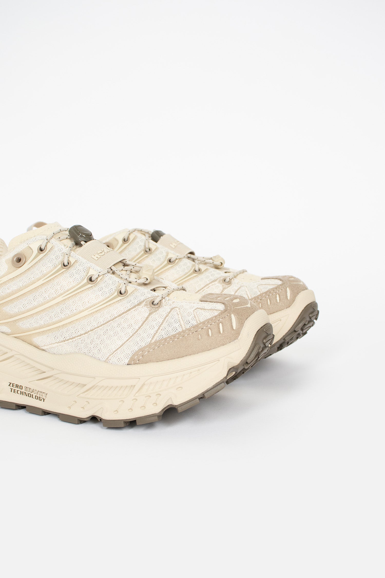 Lightweight no-sew SpeedFrame mesh construction with Hoka One One race lace upper. External monomesh debris screen. Lightweight external TPU heel counter with reflective heel pull-tab. Lightweight cushioned CMEVA top midsole with Vibram Megagrip outsole.