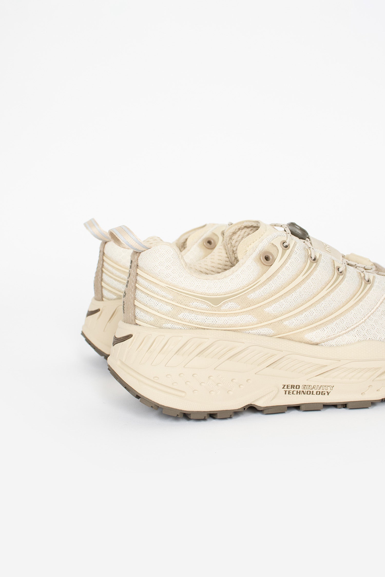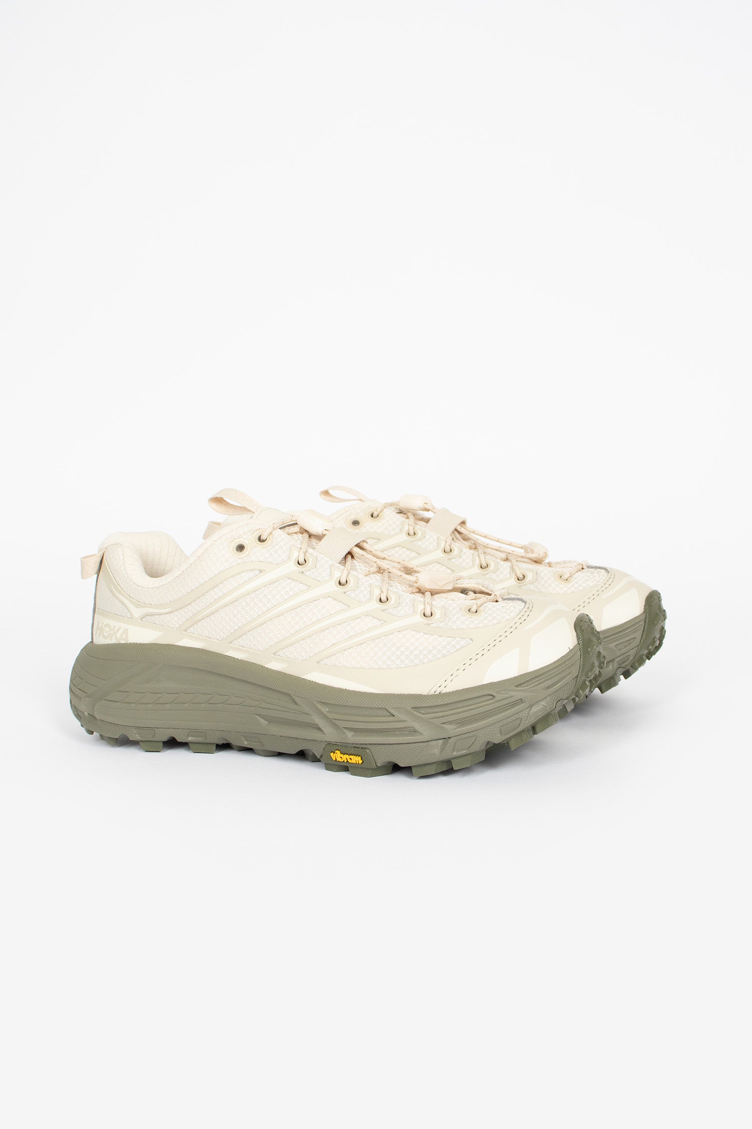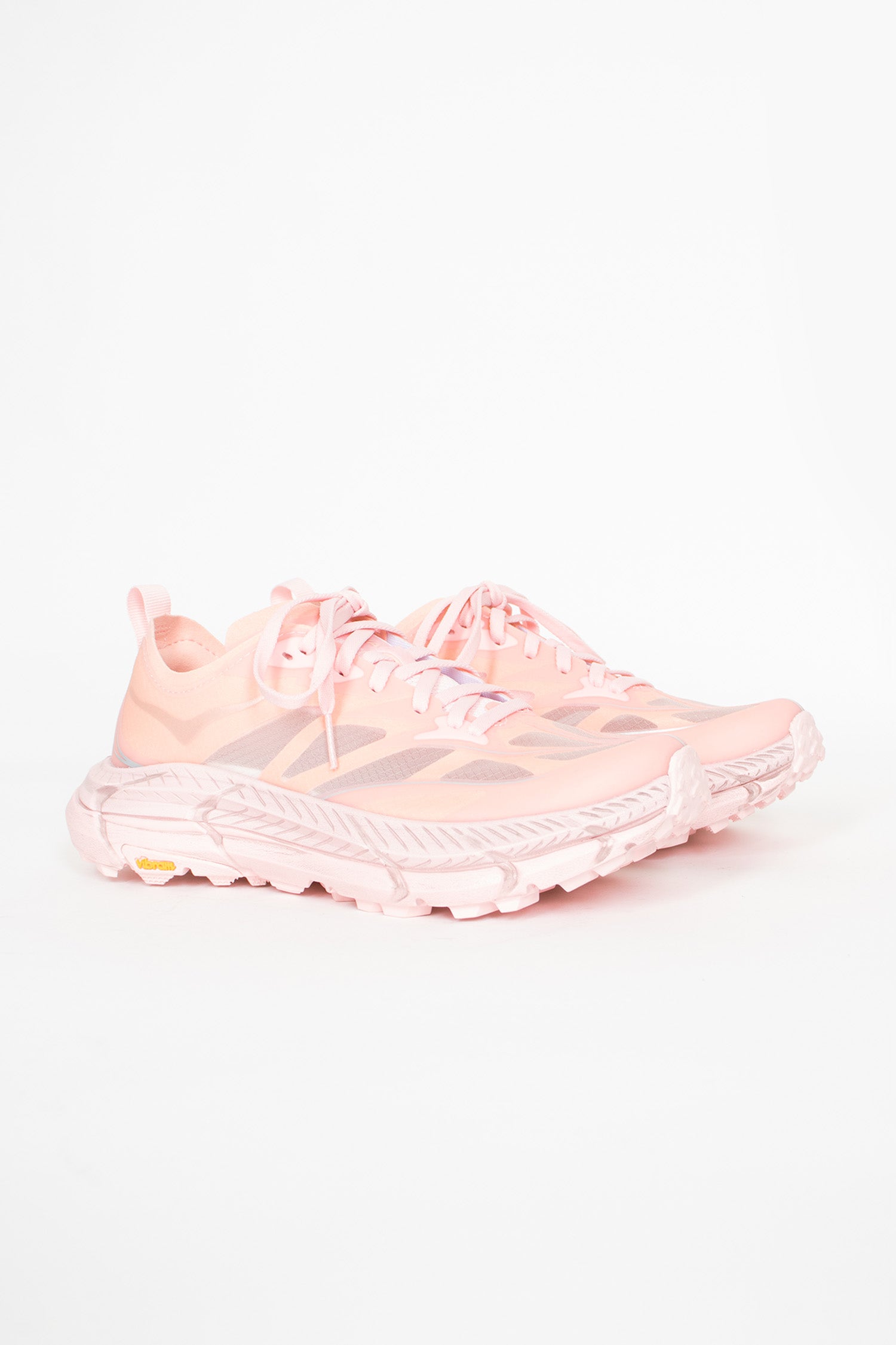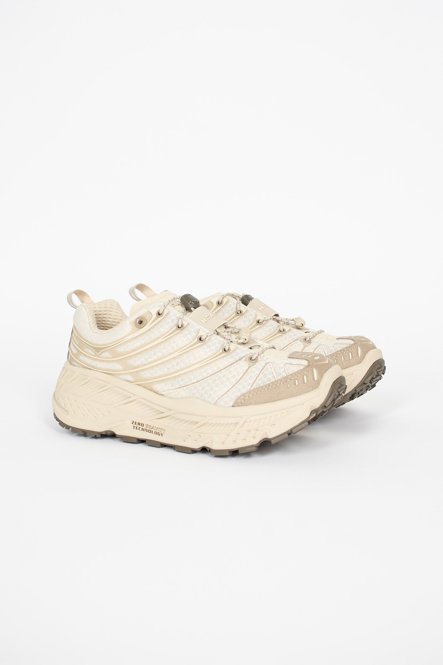 Lightweight no-sew SpeedFrame mesh construction with Hoka One One race lace upper. External monomesh debris screen. Lightweight external TPU heel counter with reflective heel pull-tab. Lightweight cushioned CMEVA top midsole with Vibram Megagrip outsole.