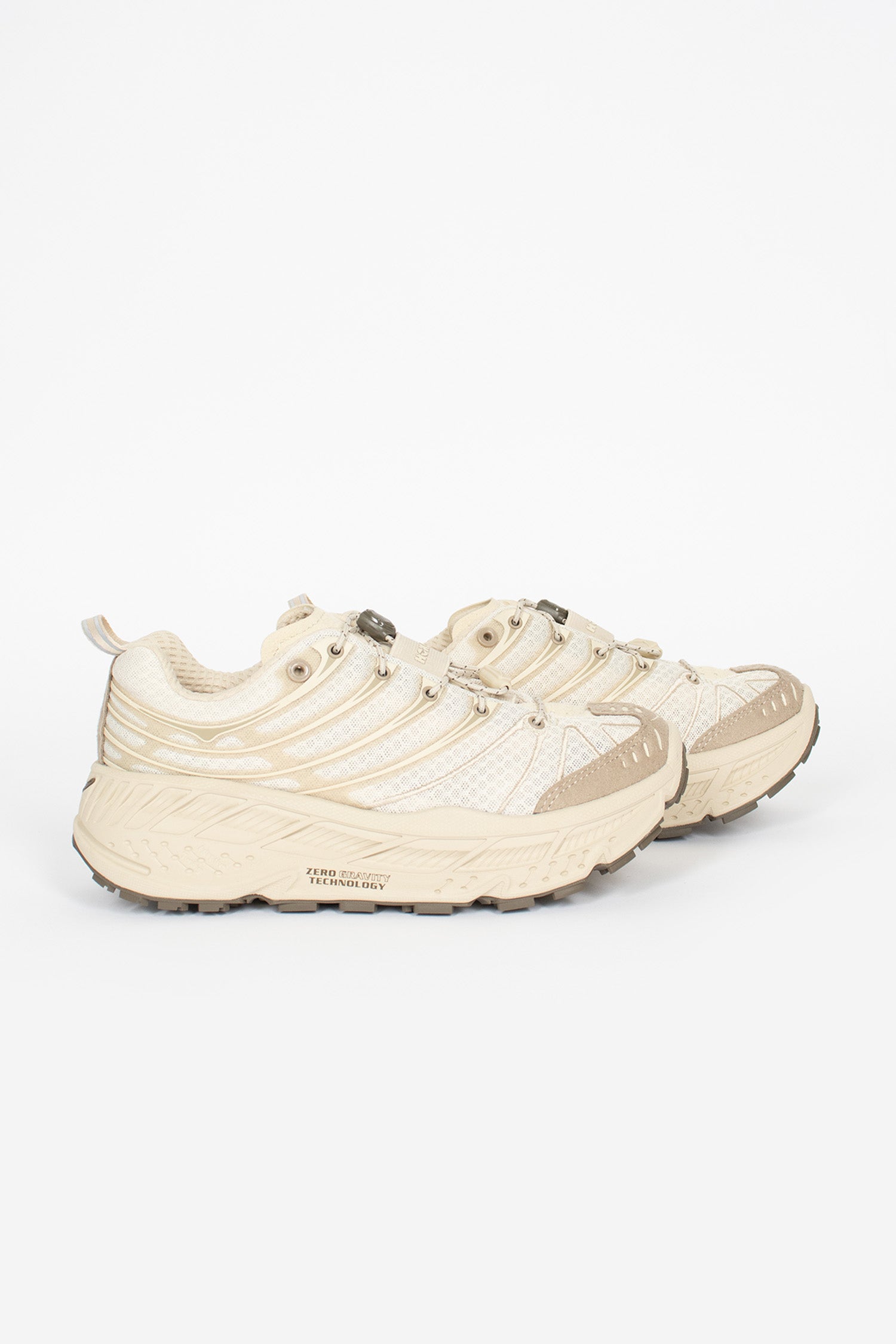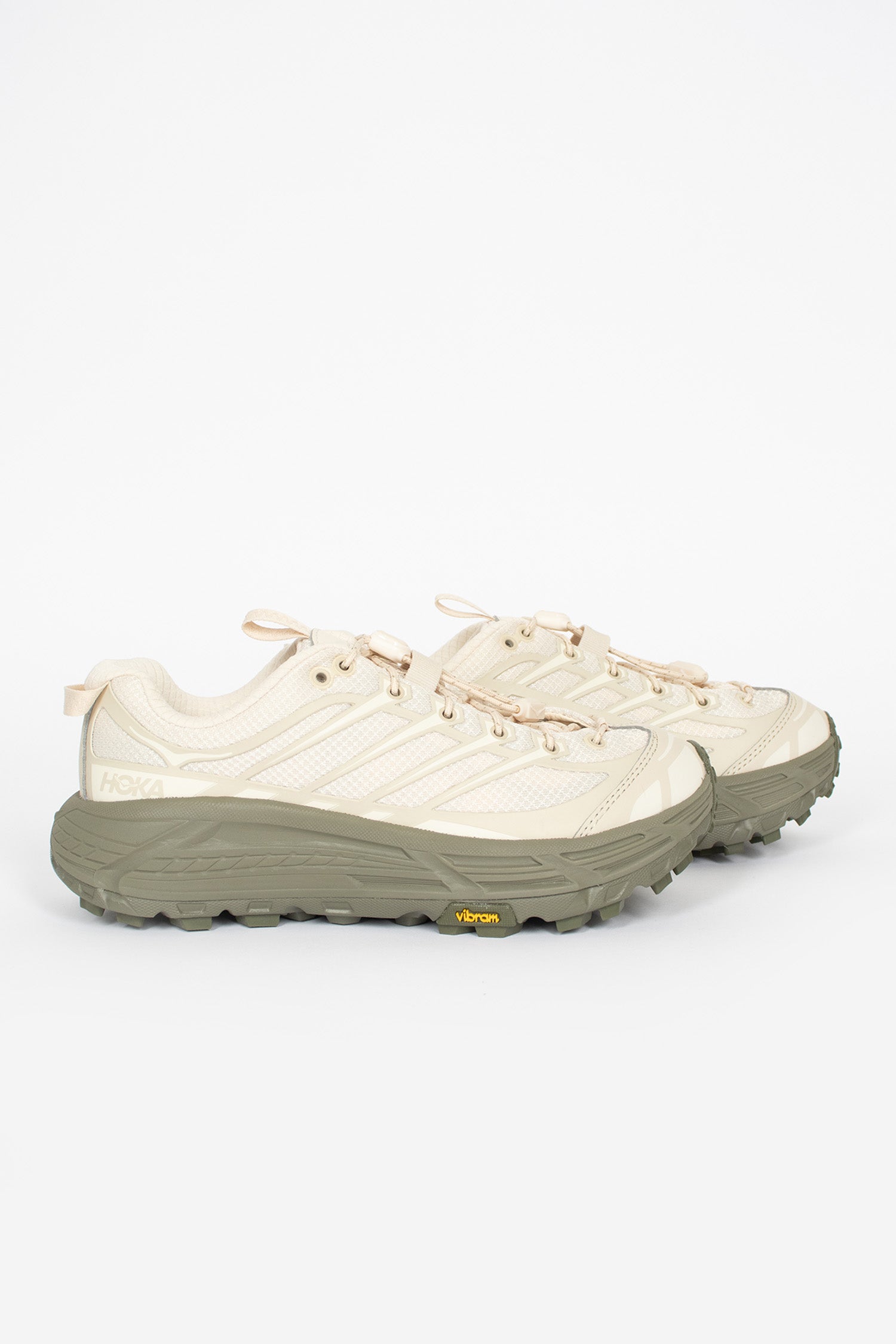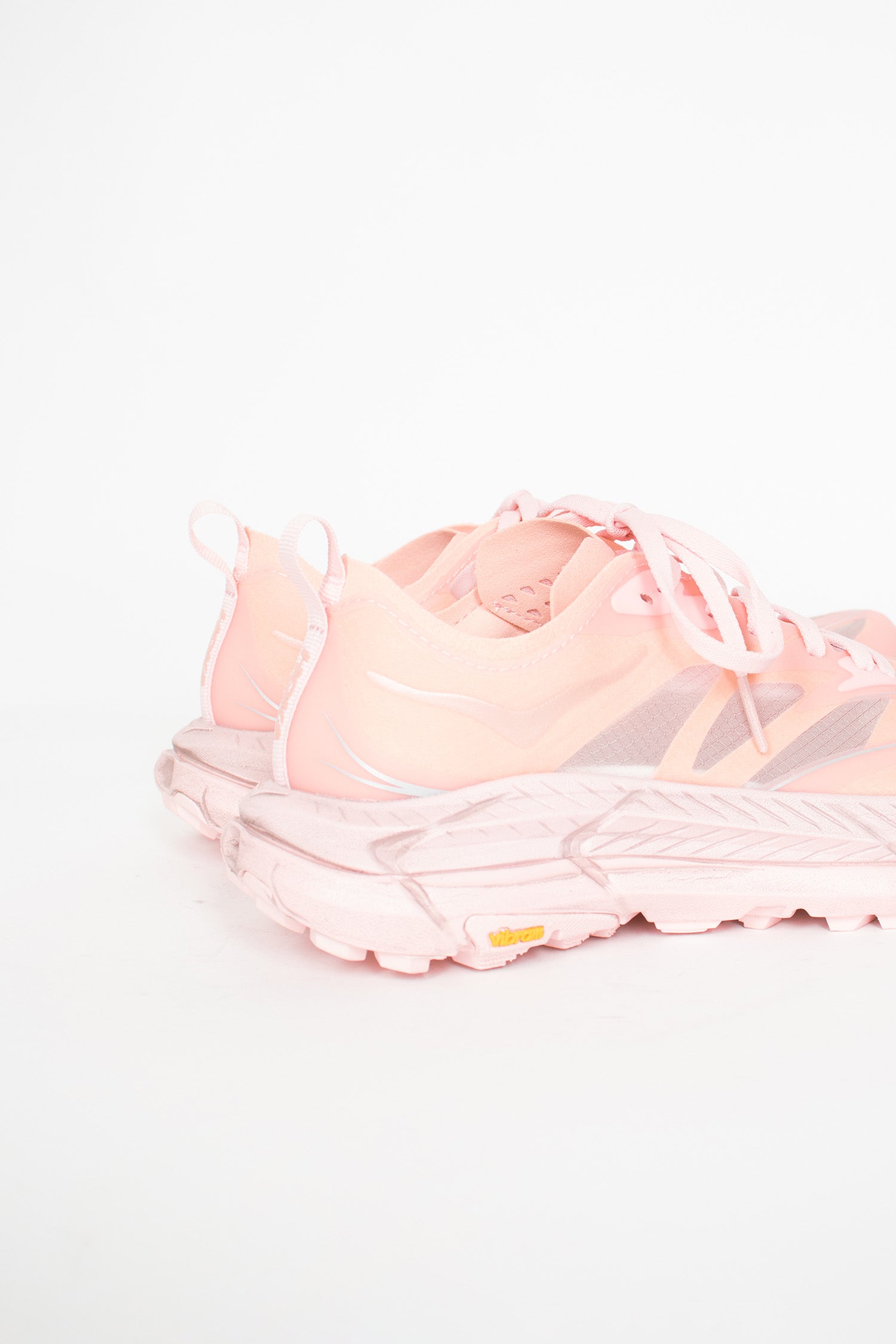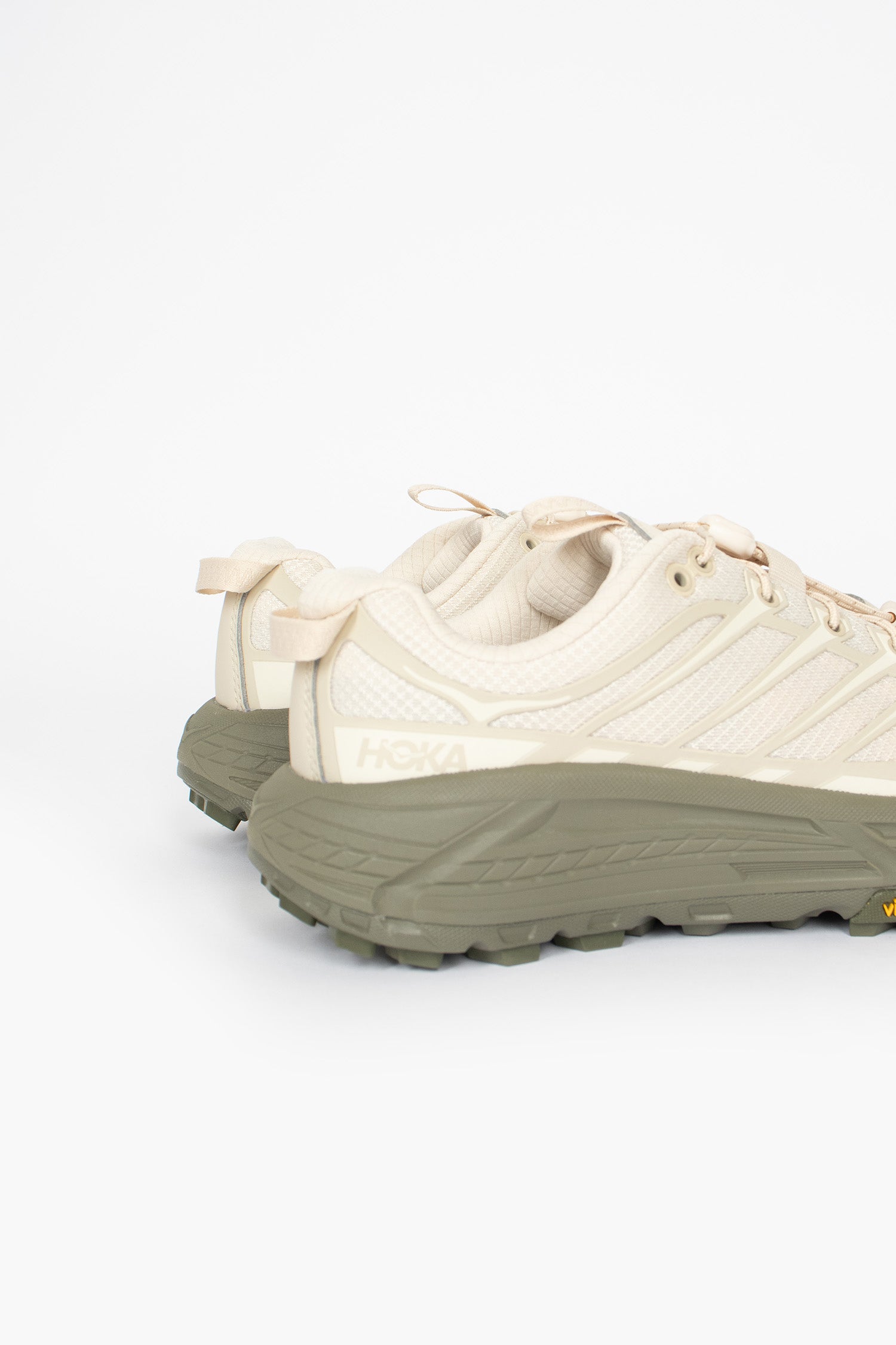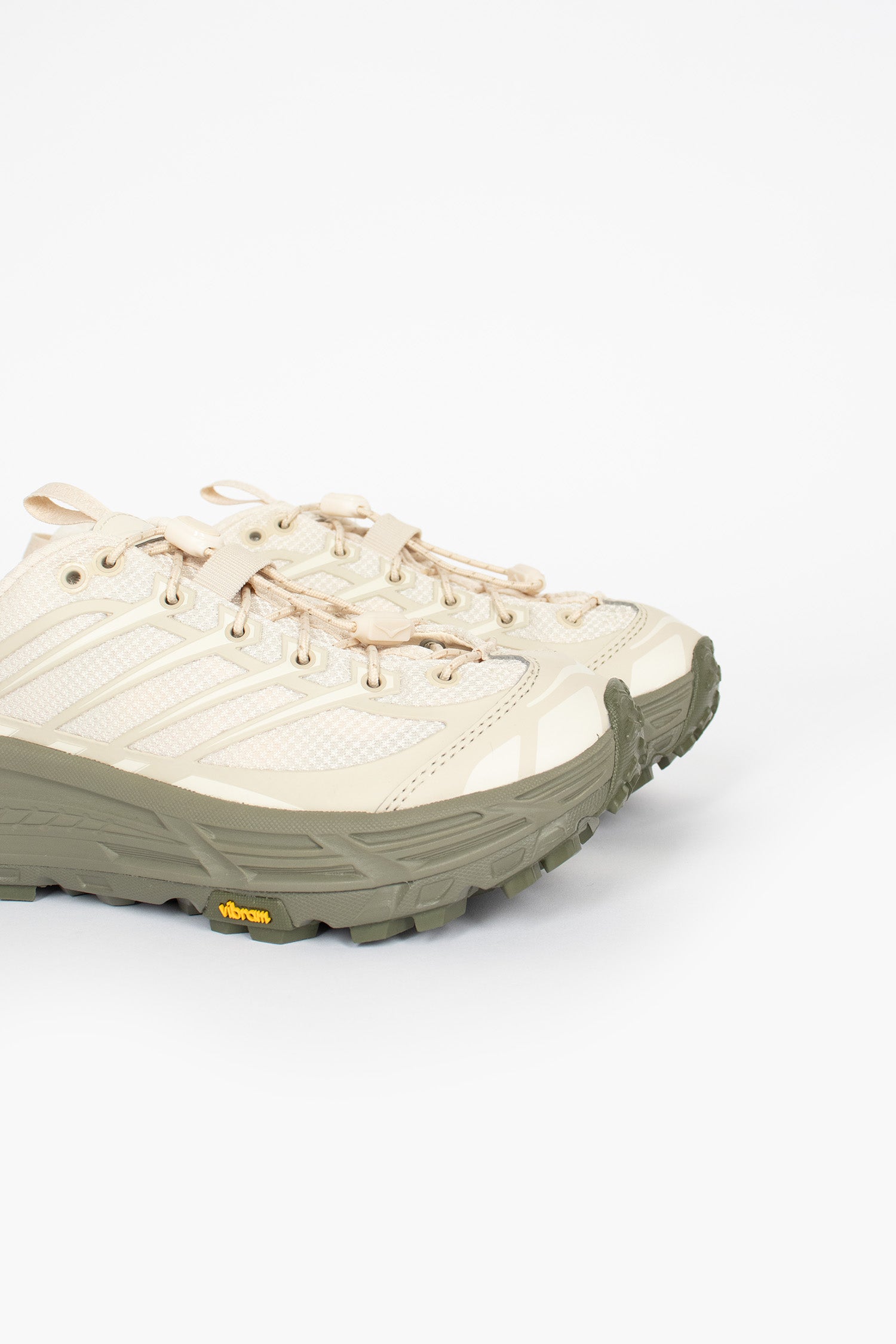 Lightweight no-sew SpeedFrame mesh construction with Hoka One One race lace upper. External monomesh debris screen. Lightweight external TPU heel counter with reflective heel pull-tab. Lightweight cushioned CMEVA top midsole with Vibram Megagrip outsole.