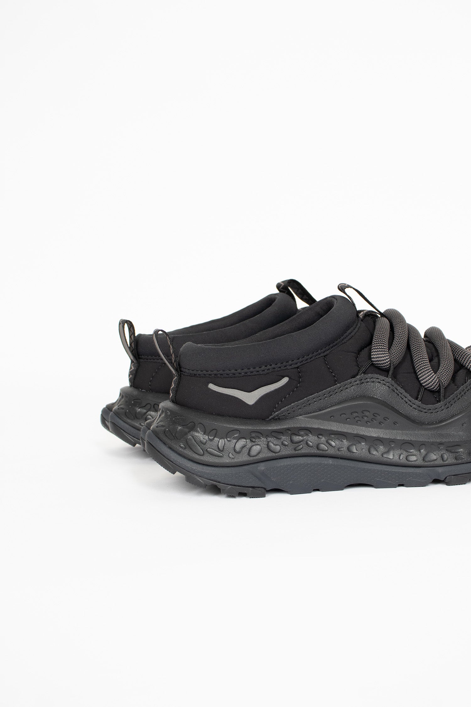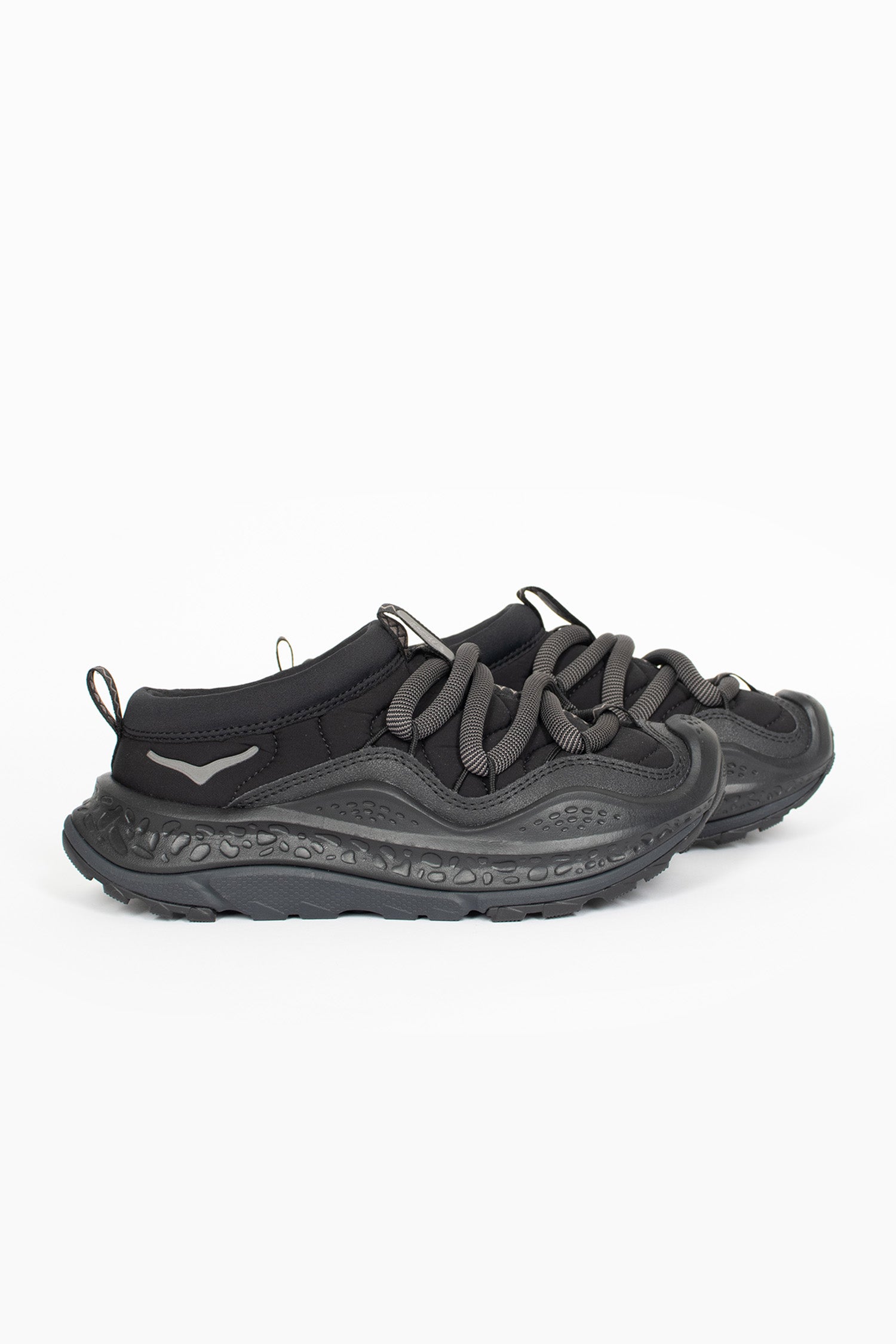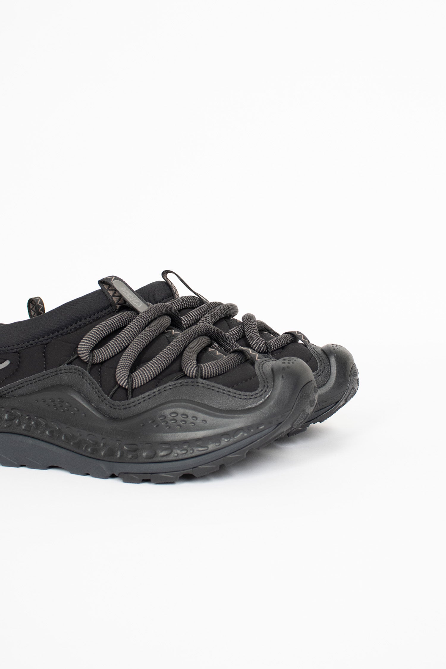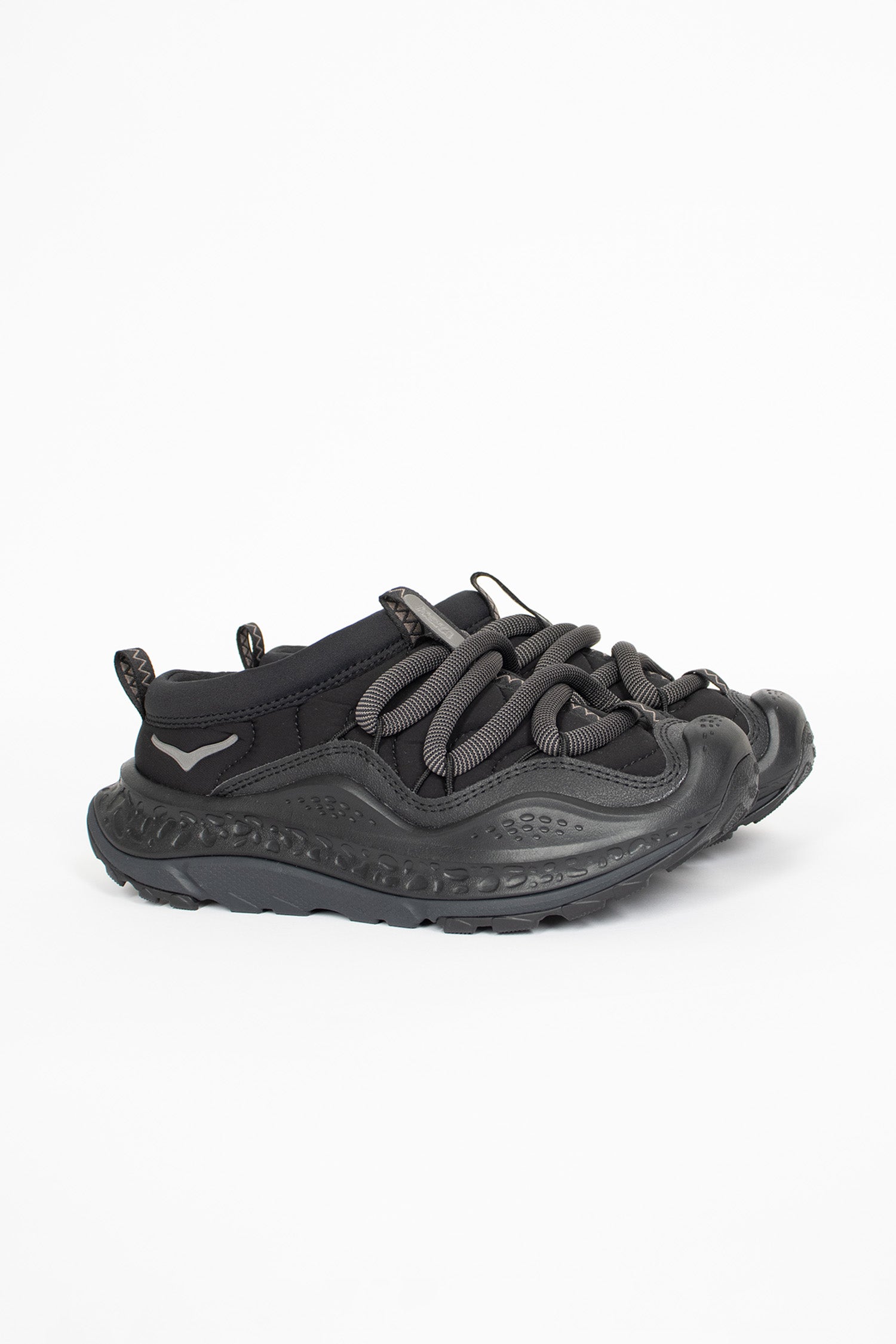 Lightweight no-sew SpeedFrame mesh construction with Hoka One One race lace upper. External monomesh debris screen. Lightweight external TPU heel counter with reflective heel pull-tab. Lightweight cushioned CMEVA top midsole with Vibram Megagrip outsole.