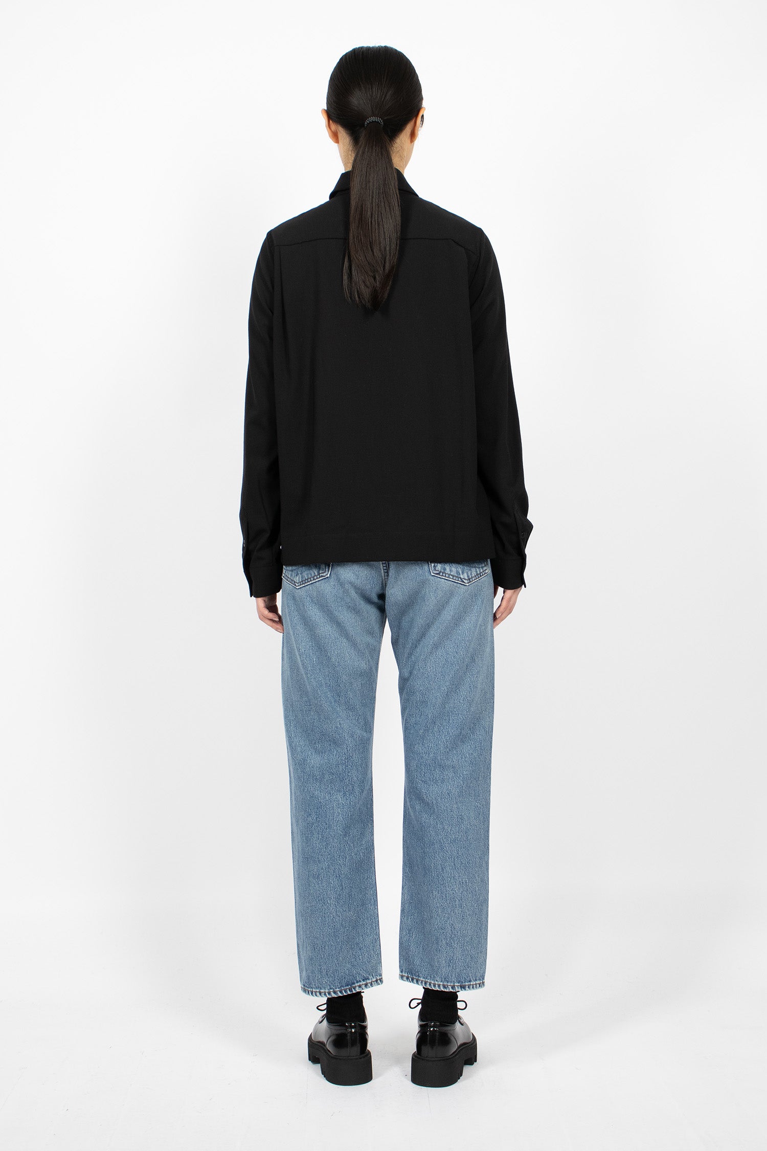 OrSlow 105 jean in one wash denim. Belt loops, zip front and debossed button fastening, classic 5 pocket jean with rivets, leather OrSlow back tab. Cropped length and straight leg.