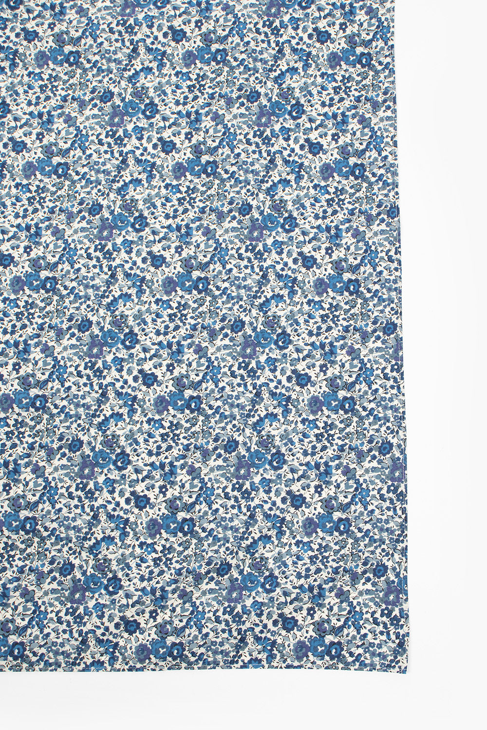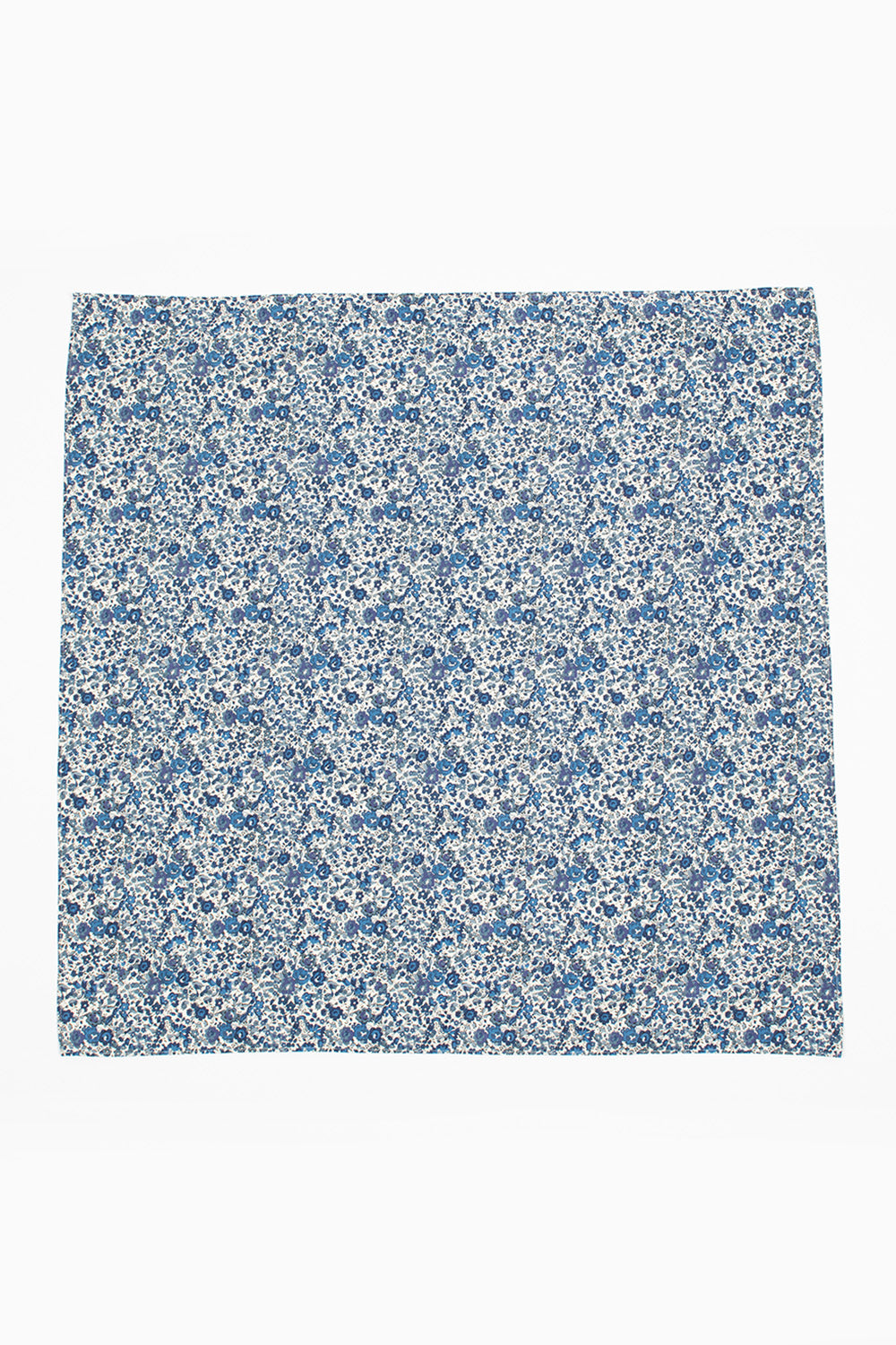 Toujours chambray flower scarf in blue liberty floral print. Square cut chambray cloth with stitched edges.