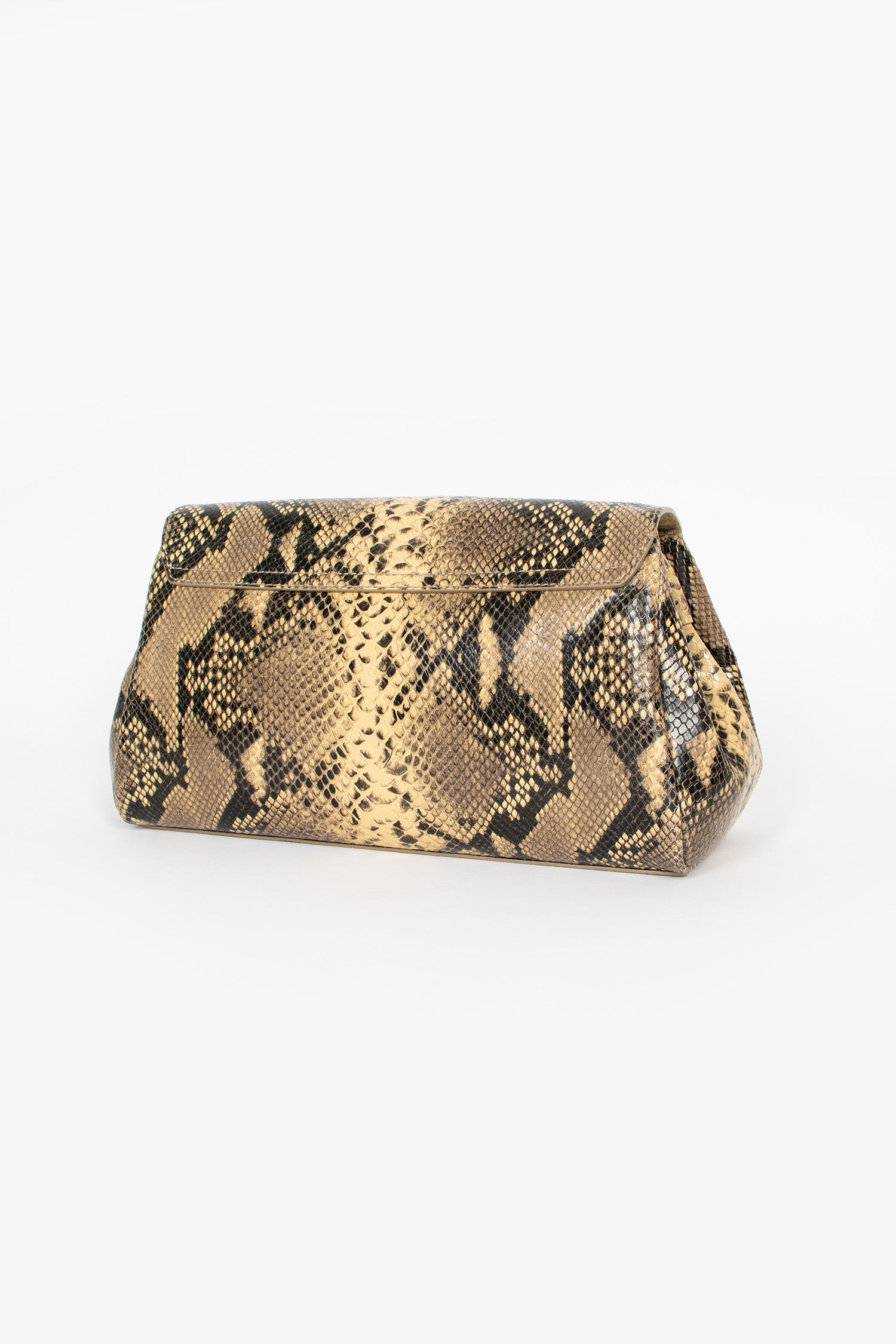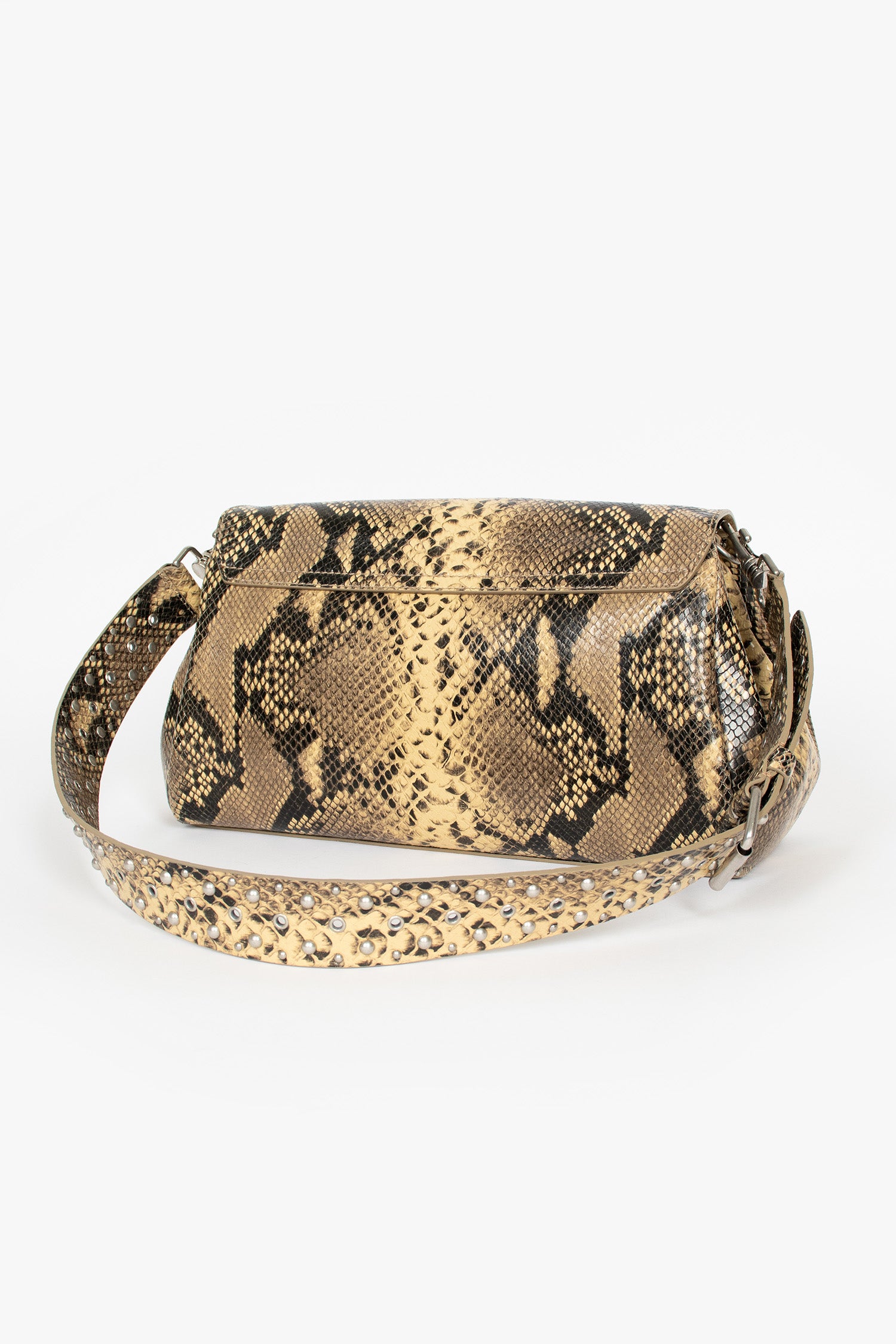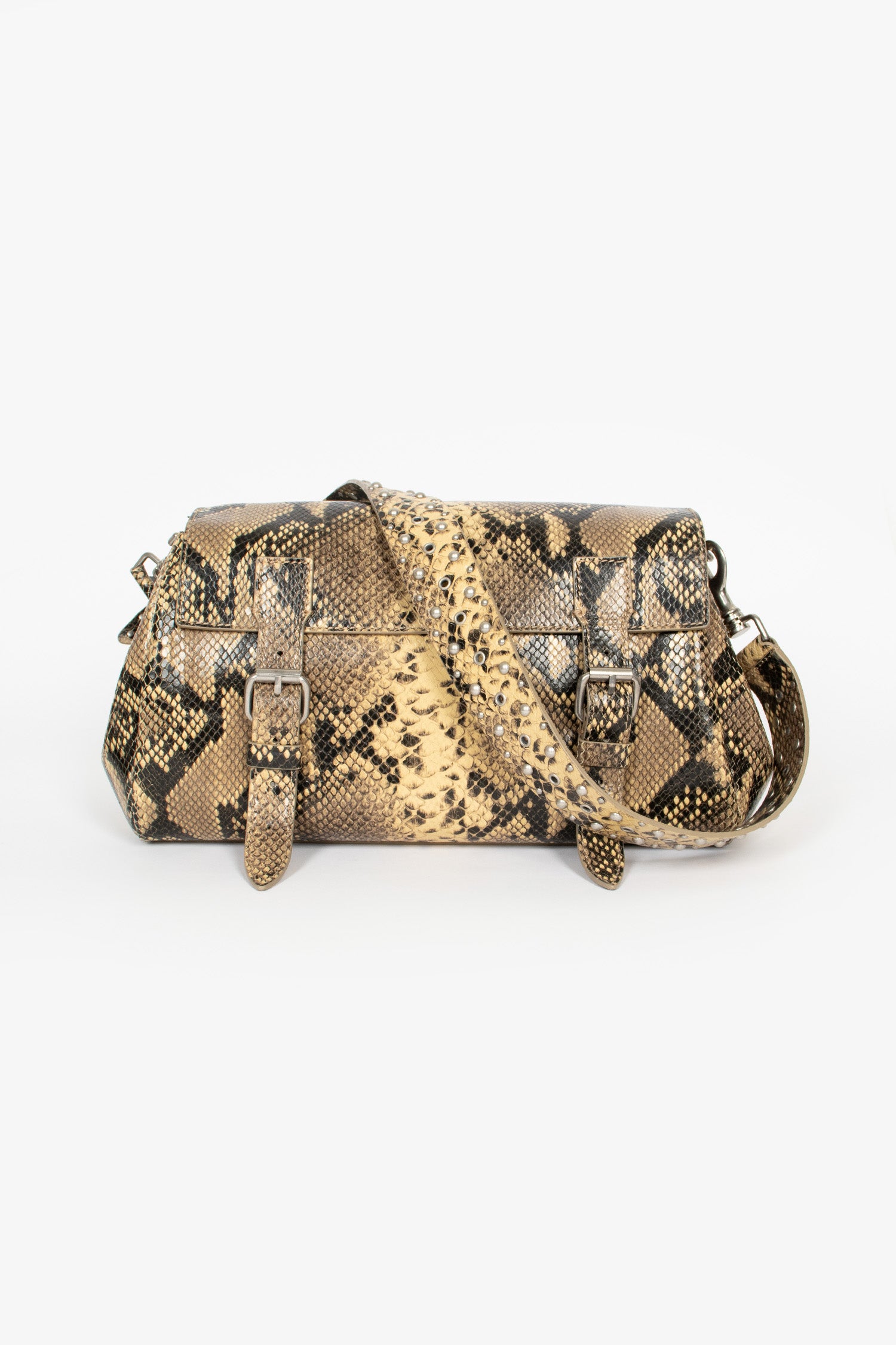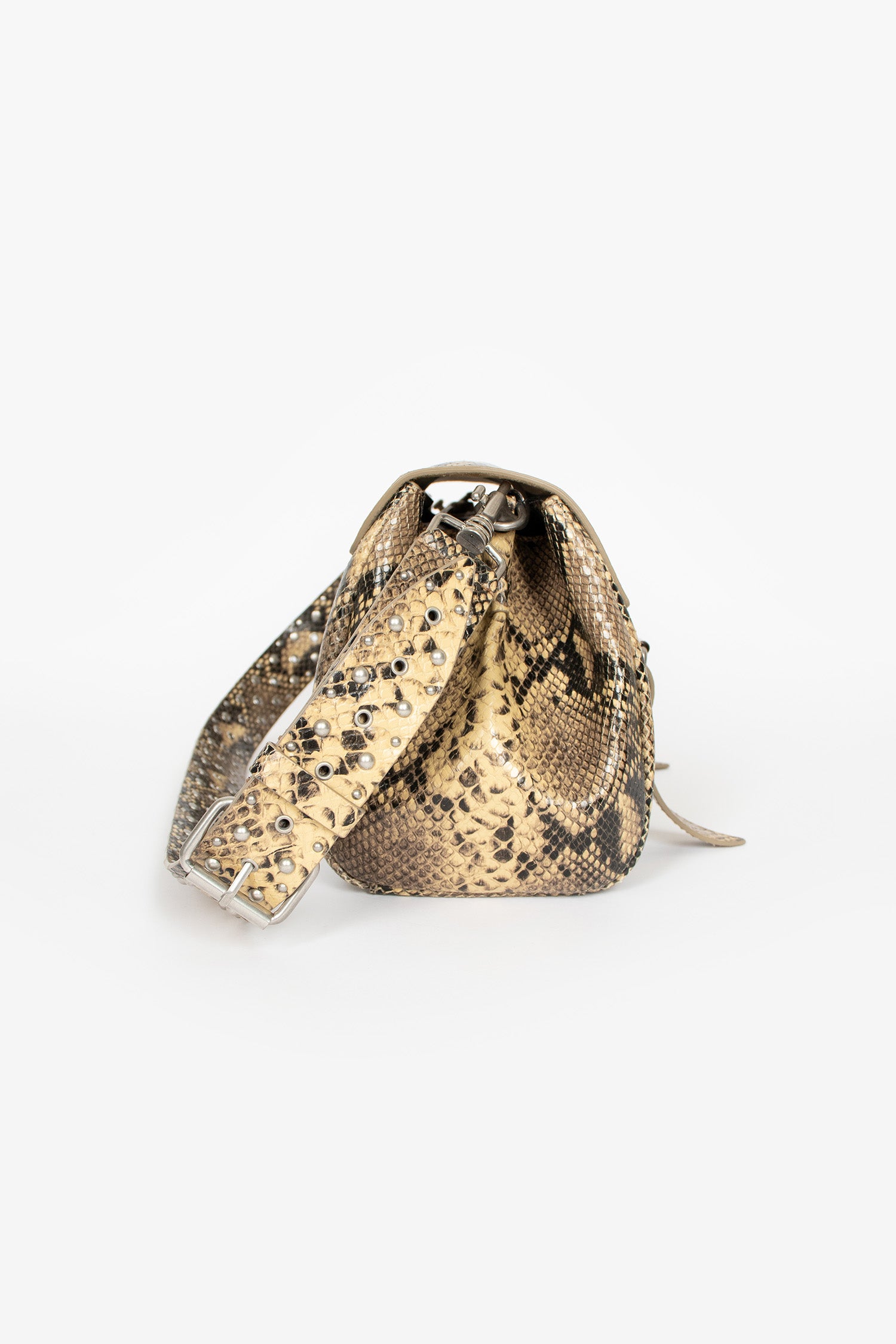 Dries Van Noten leather satchel in beige snakeskin print. Adjustable and detachable shoulder strap. Buckle detail with magnetic snap closure. Two main compartments with canvas lining. Inner zip pocket and patch pocket. Comes with dust bag.