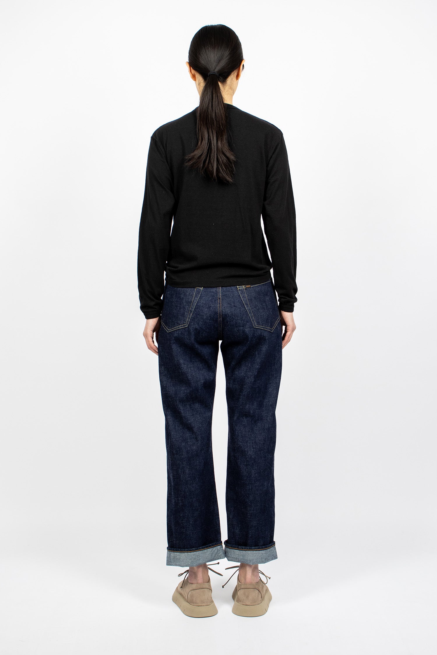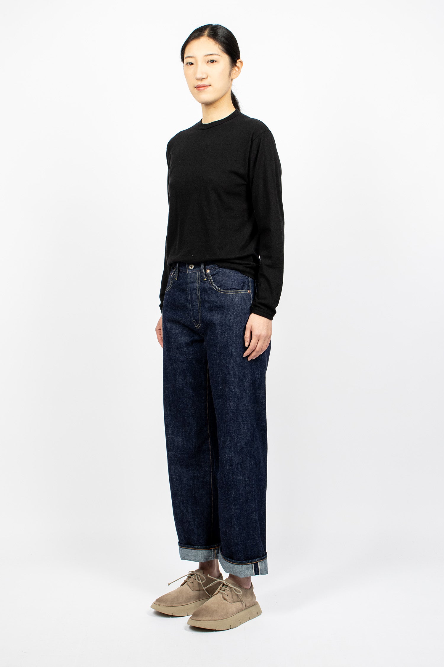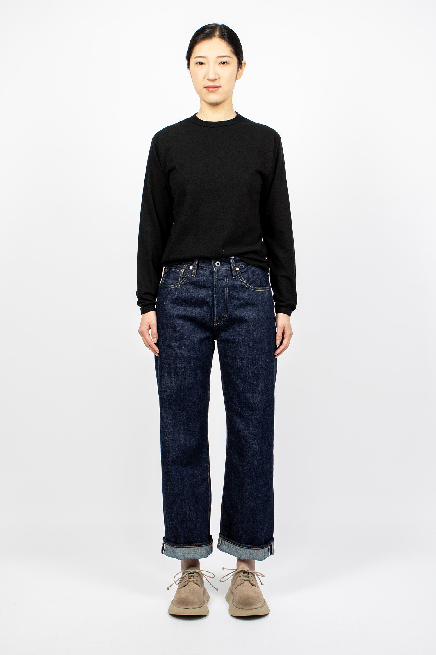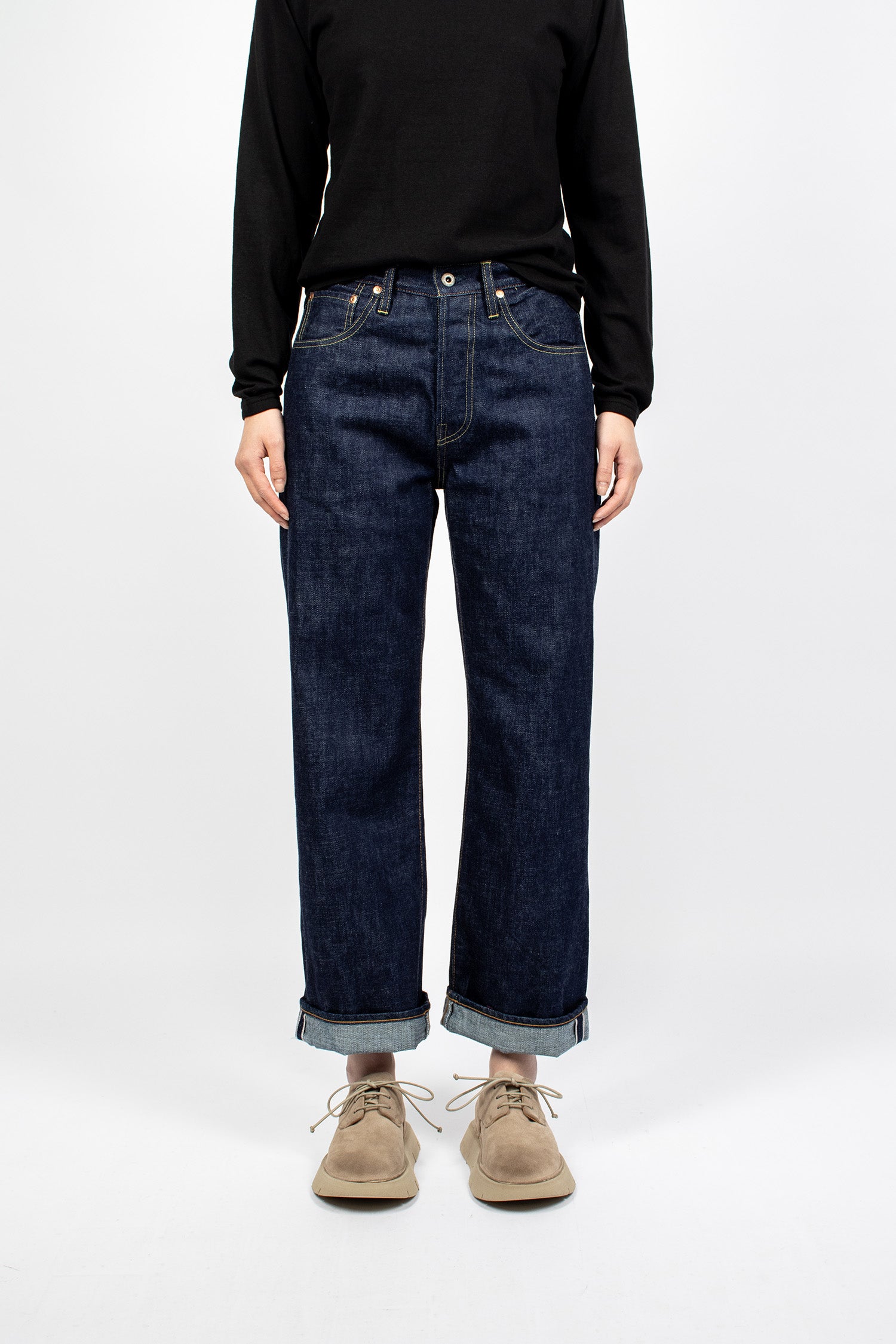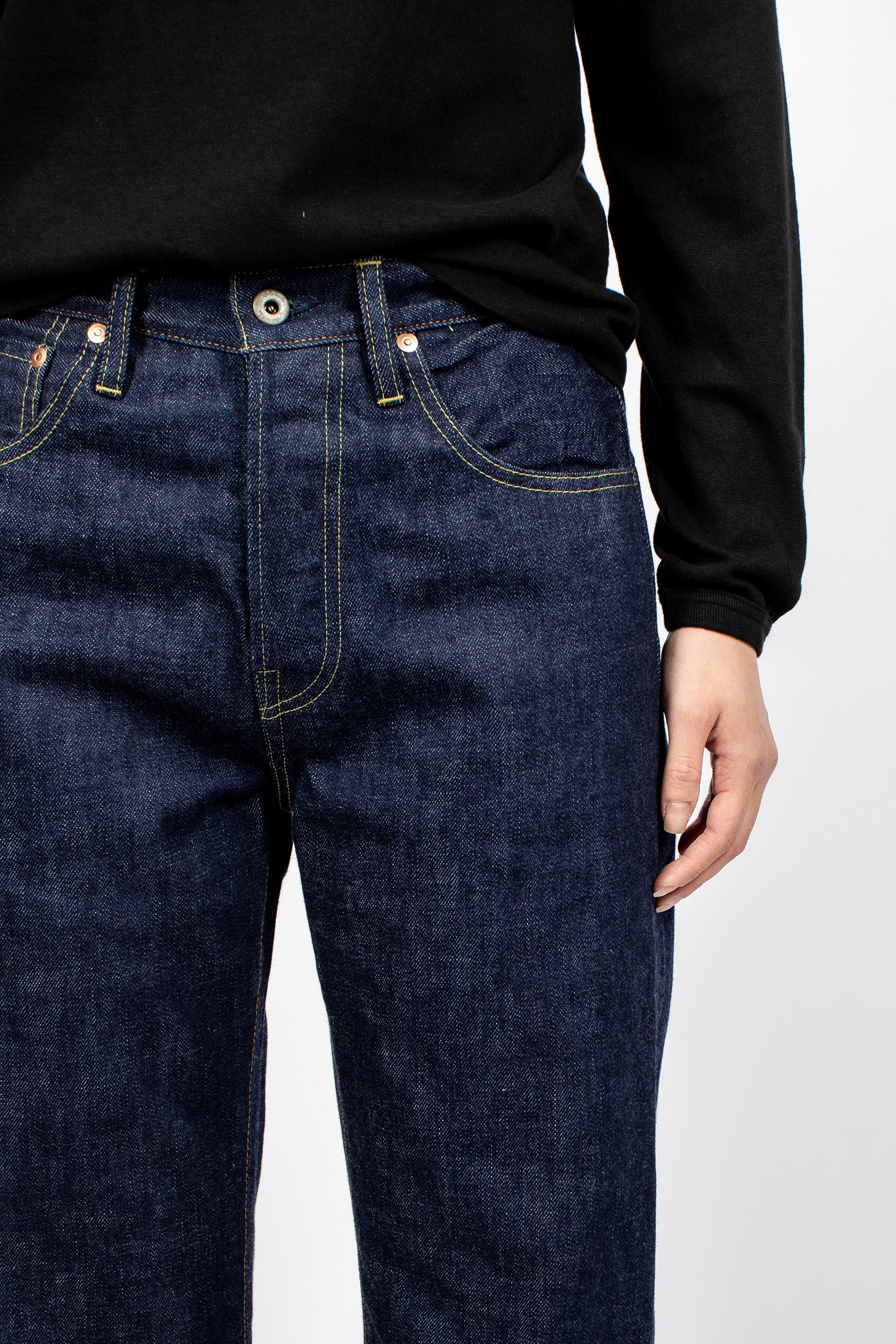 Chimala MP03A straight cut jean in rinse 13.5oz selvedge denim. Custom chimala button front fastening with distressed detail. Belt loops. Classic 5 pocket style, back leather Chimala patch branding and wide straight leg. Left hand twill.